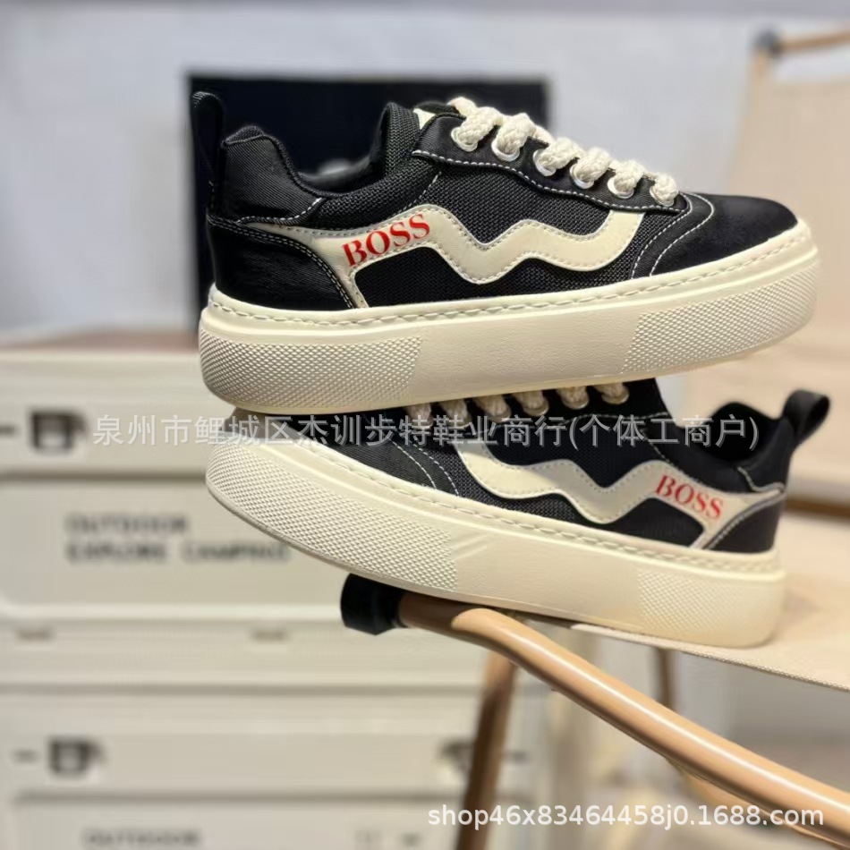 雨果博斯直播款学生日系原宿风运动休闲鞋厚底潮搭板鞋系带帆布男