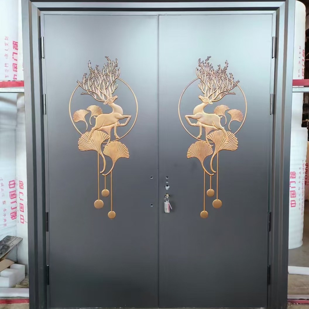 供应自建房别墅大门铸铝装甲门双开安全进户门入户庭院大门新中式