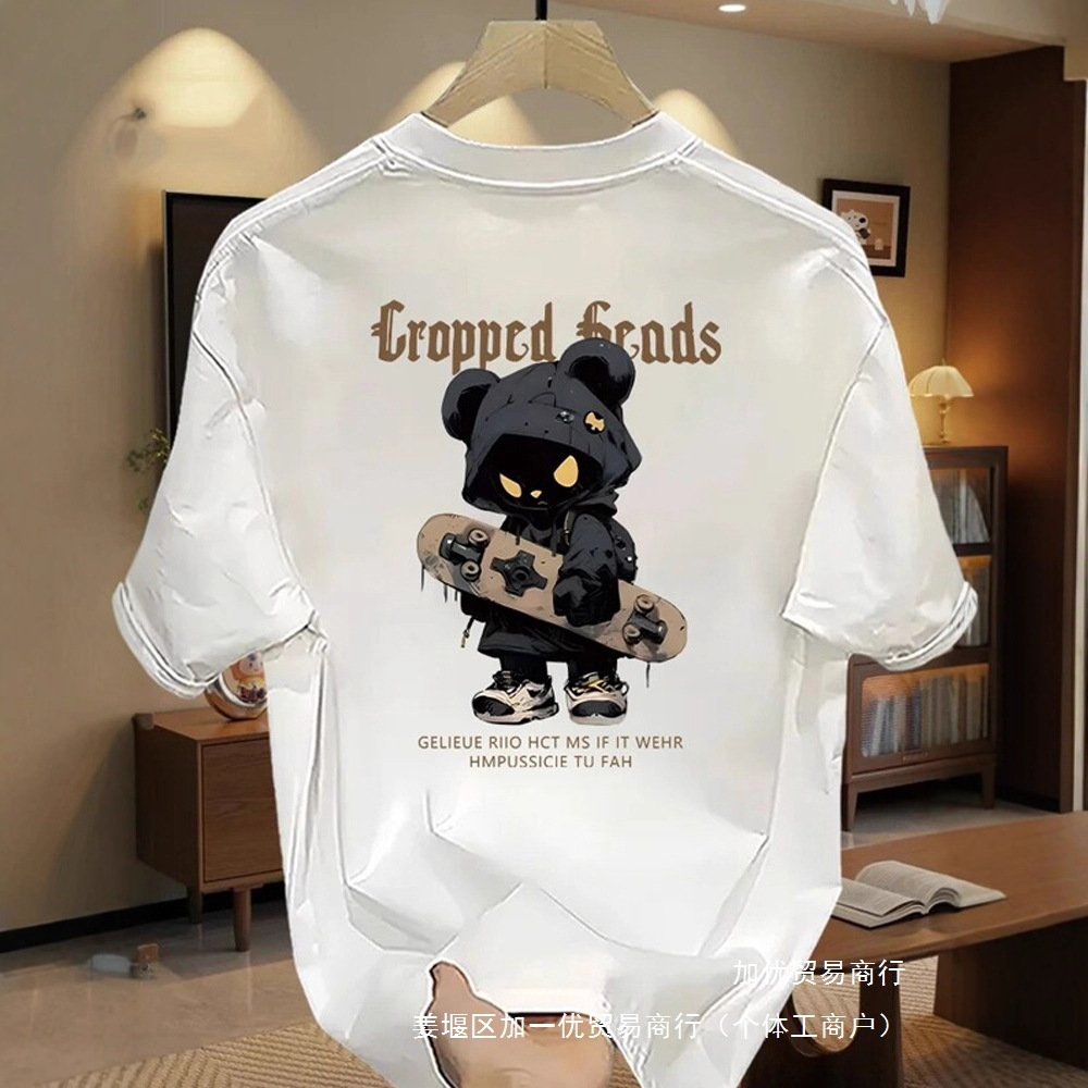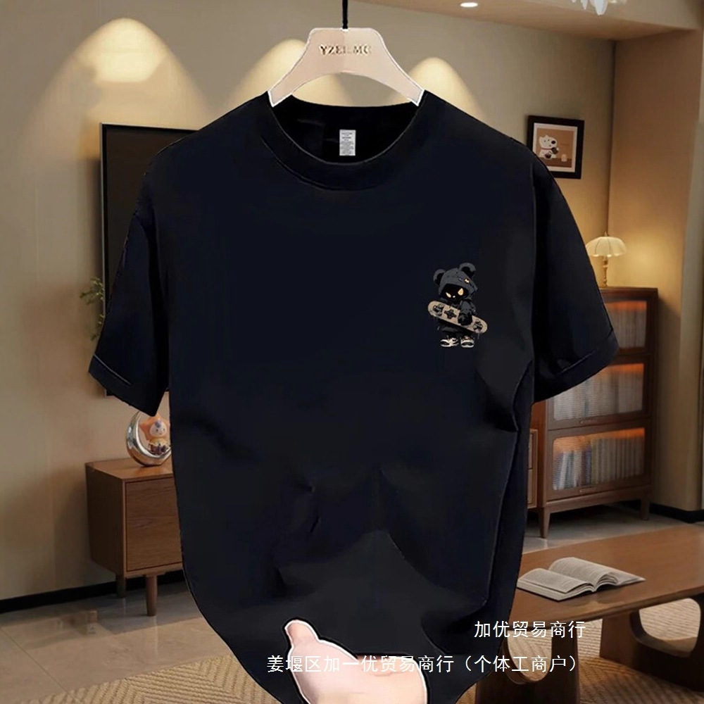 痞帅男装2025夏季新款圆领纯棉T恤短袖男大码休闲时尚宽松高批发