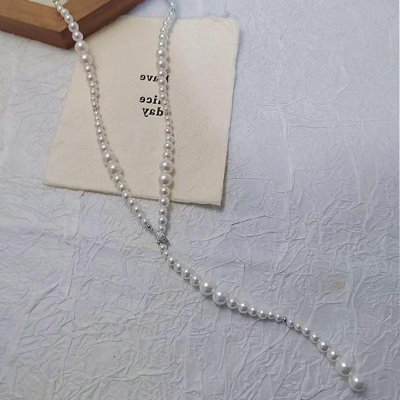 贝壳珍珠项链多层简约长款项链大小珍珠设计款铜合金配件时尚项链