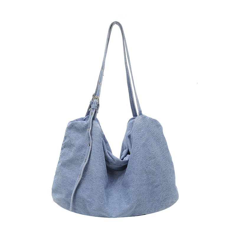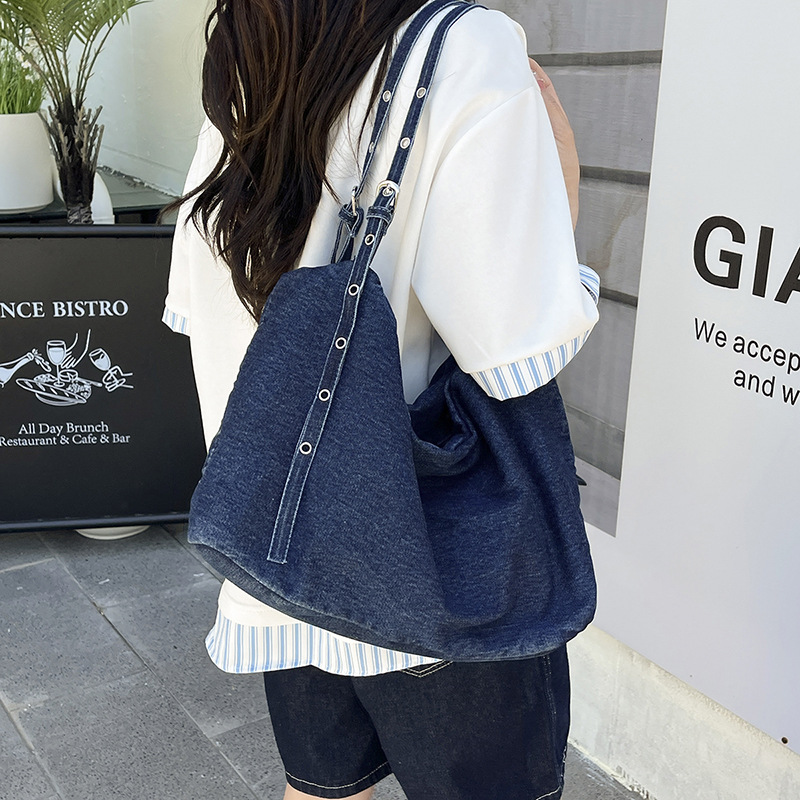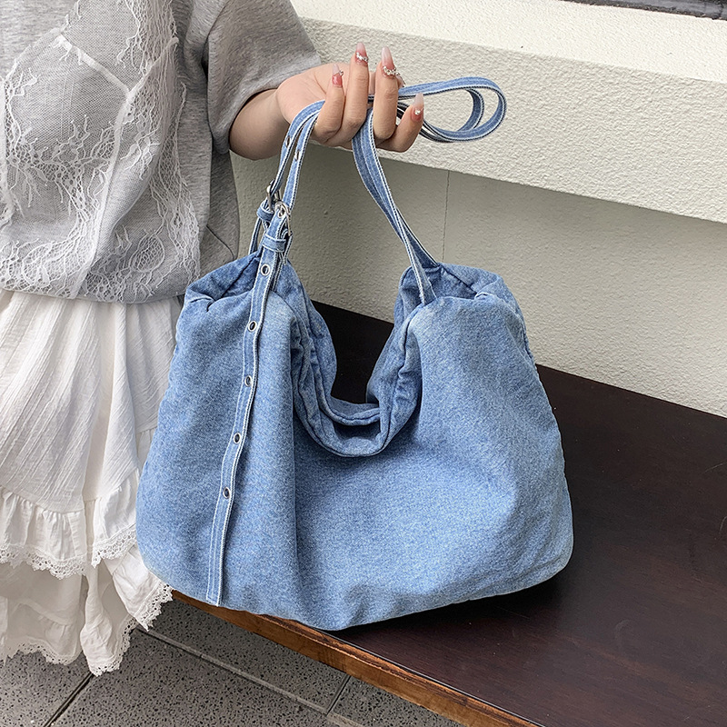 新款水洗牛仔布托特包时尚上班通勤斜挎包包女休闲潮流纯色单肩包