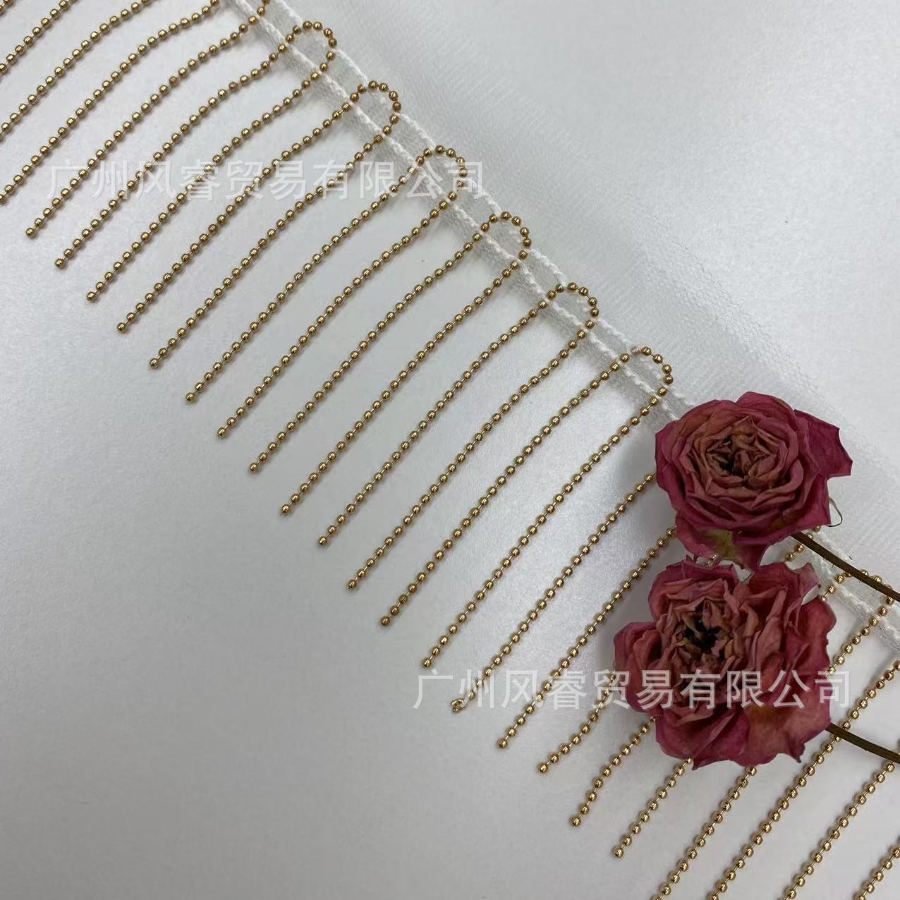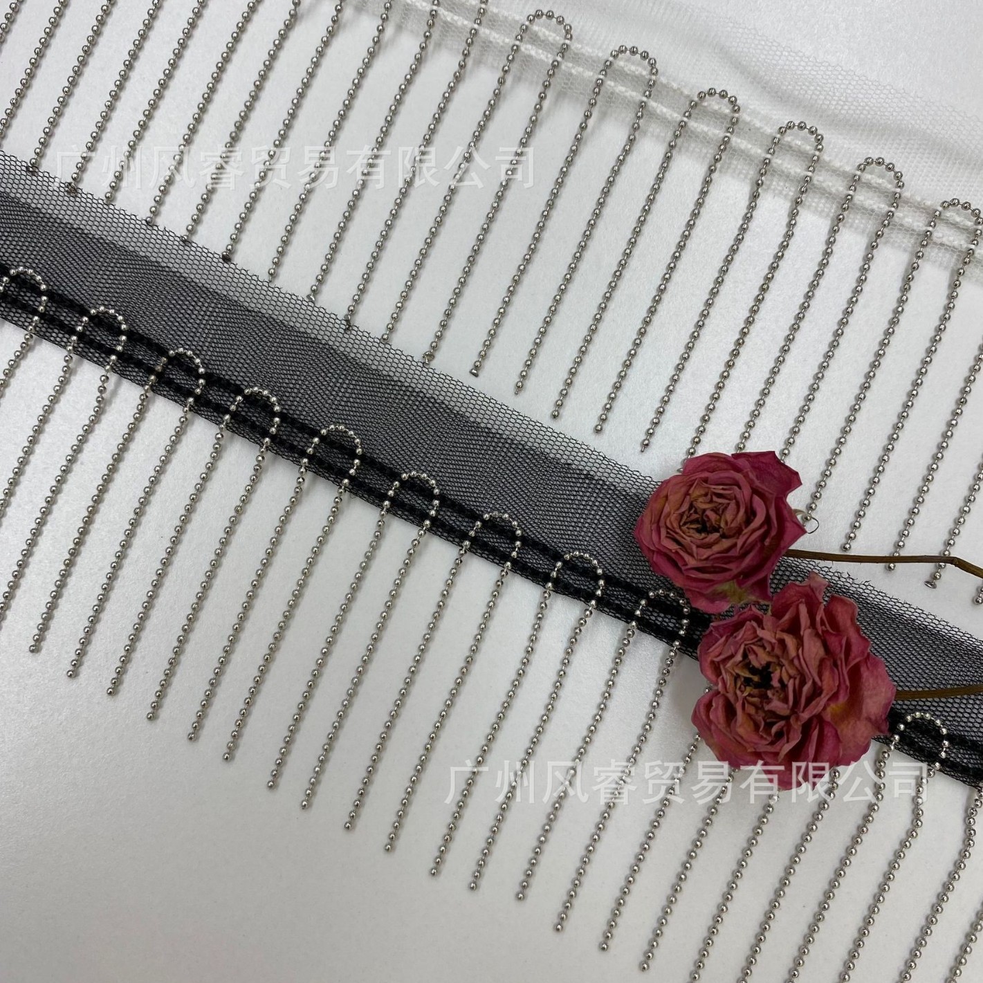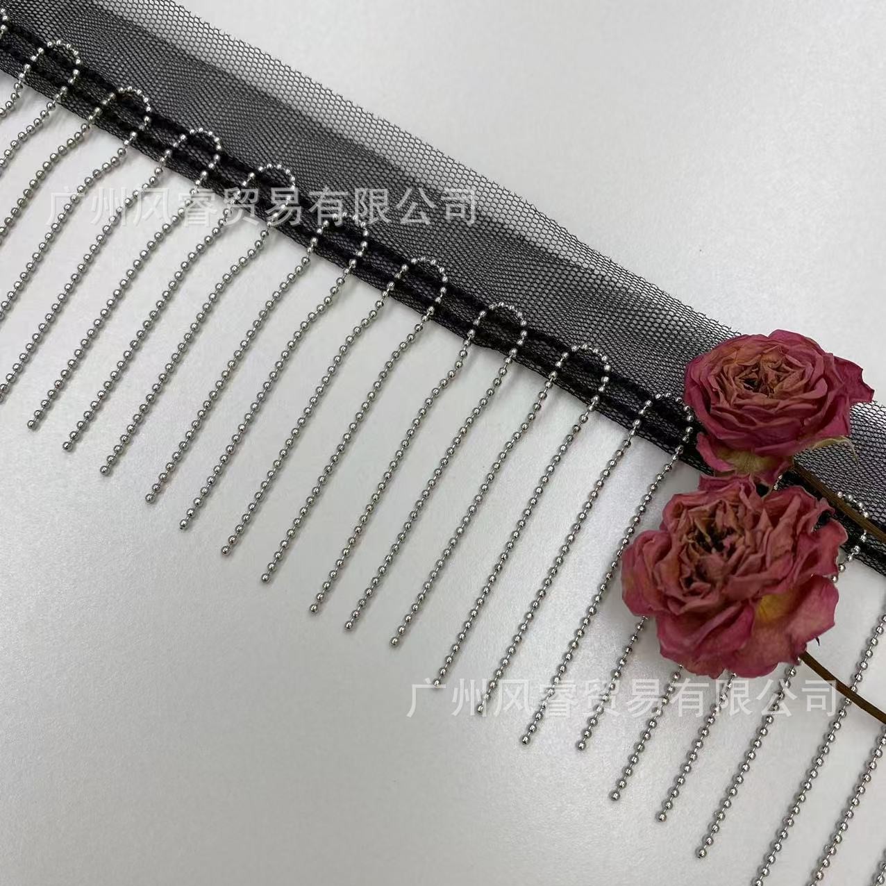 厂家现货6公分网纱绣珠链流苏花边 金属链条排须DIY服装箱包饰品