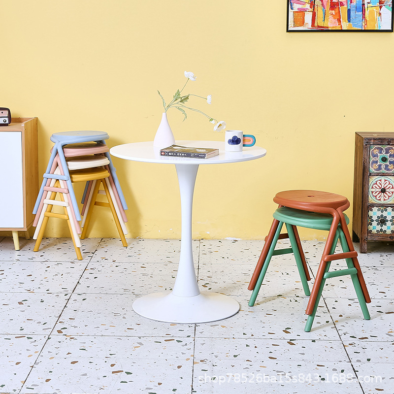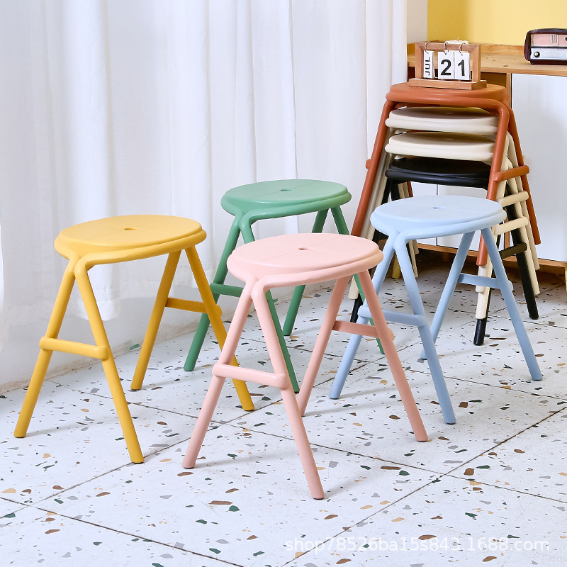 北欧塑料餐凳加厚家用板凳可叠放圆凳子现代简约梳妆椅创意换鞋凳