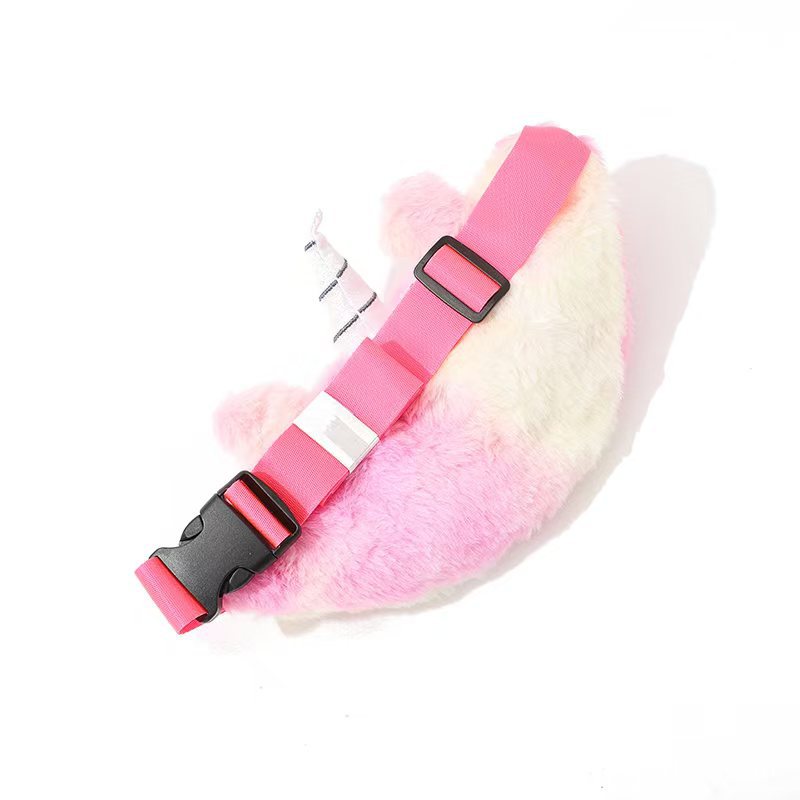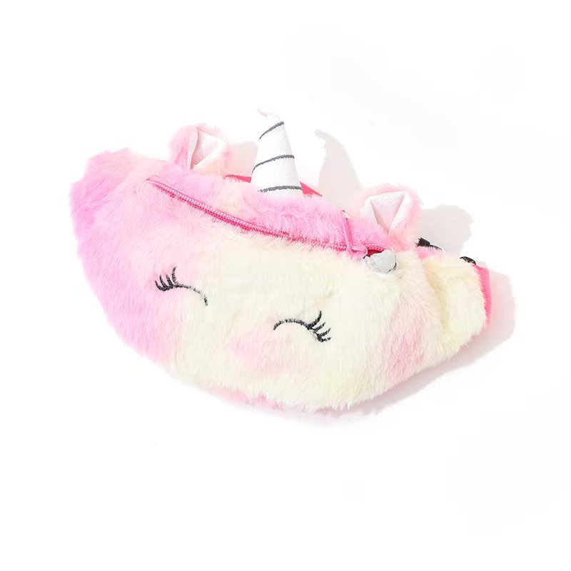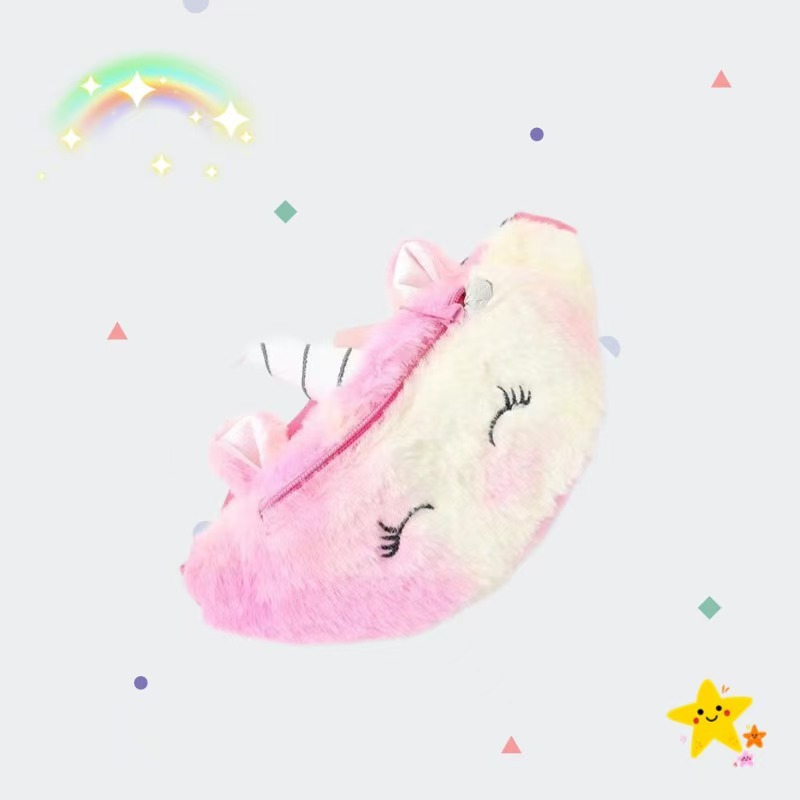 独角兽造型毛绒腰包 彩虹色可爱玩偶斜跨包 卡通萌系出行收纳小包