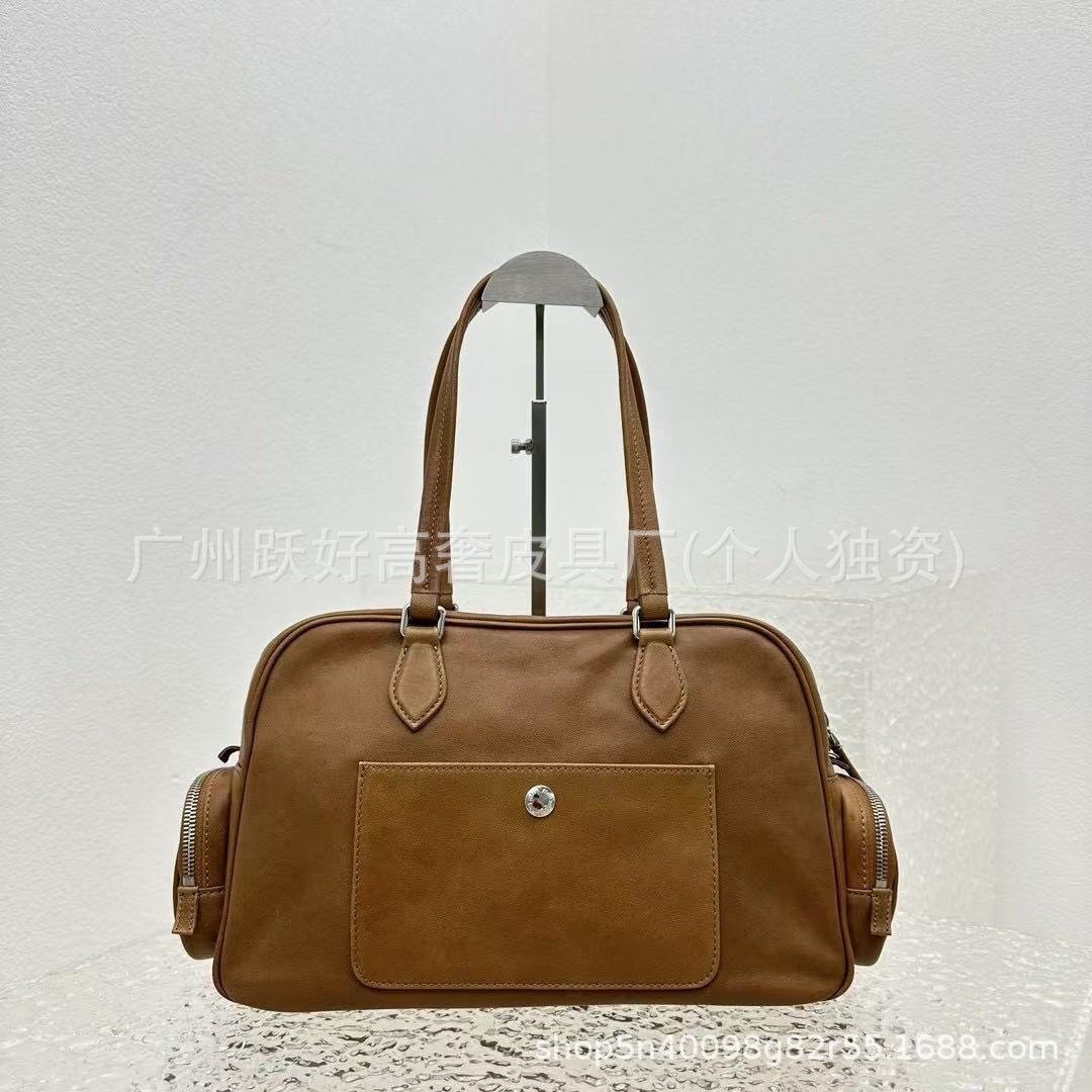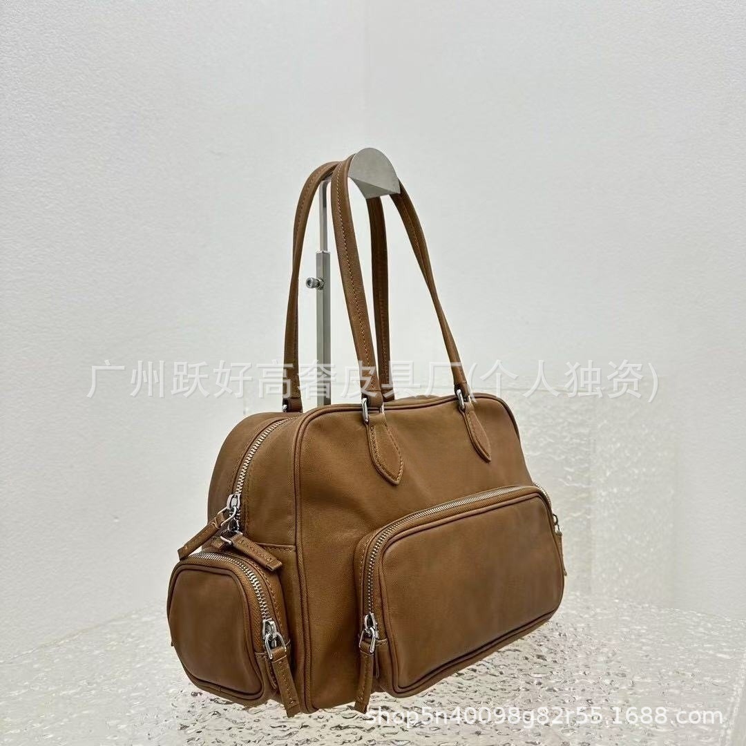 缪家秀款2025多口袋小众复古真皮机车包女大容量单肩腋下潮流百搭