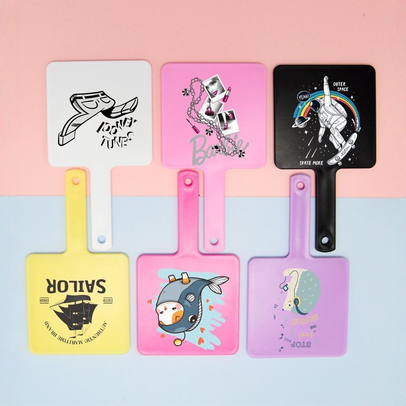 方形手持化妆镜广告创意小镜子便携随身美容镜可印LOGO手柄镜批发