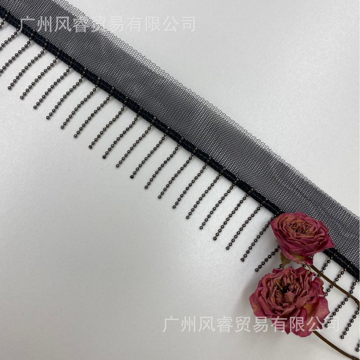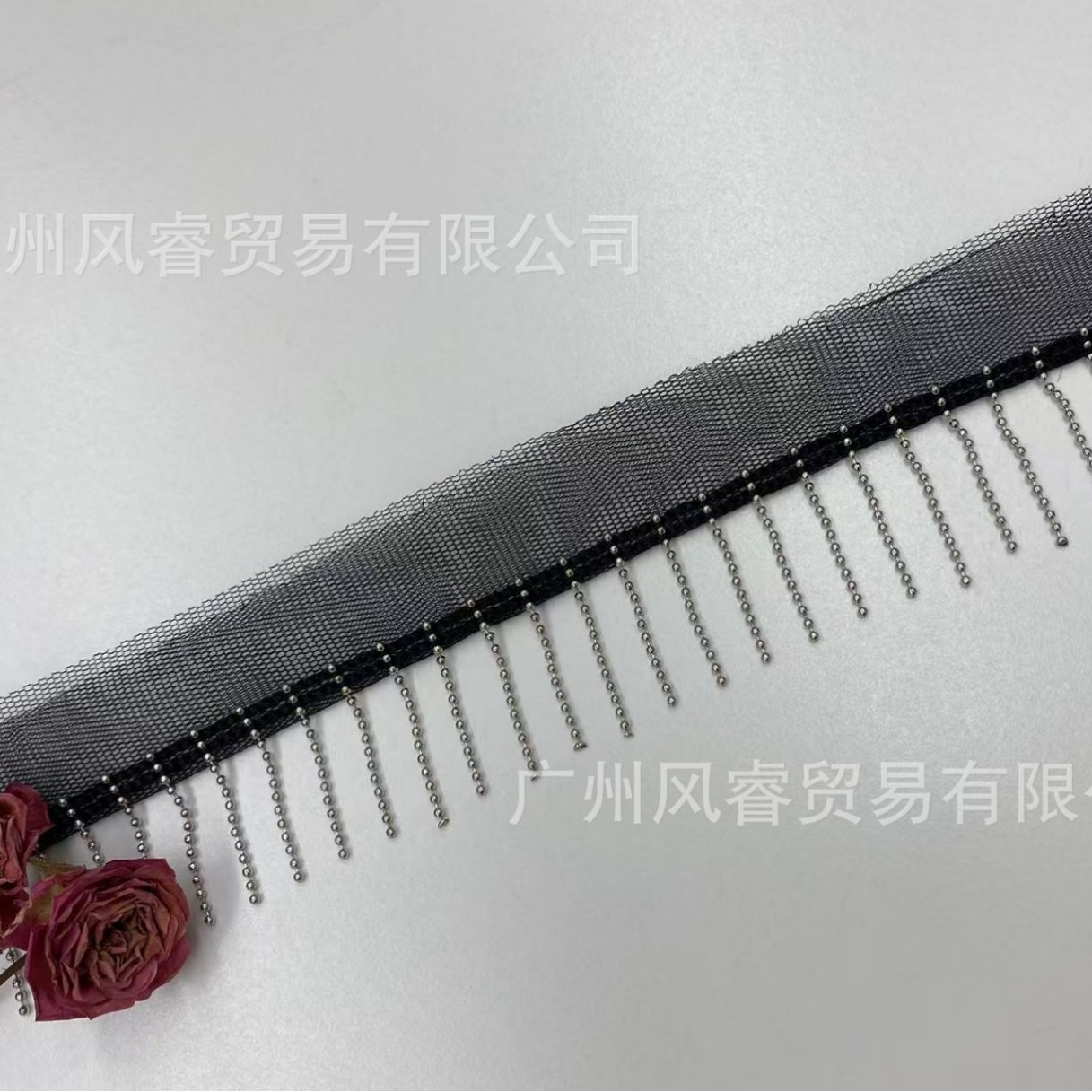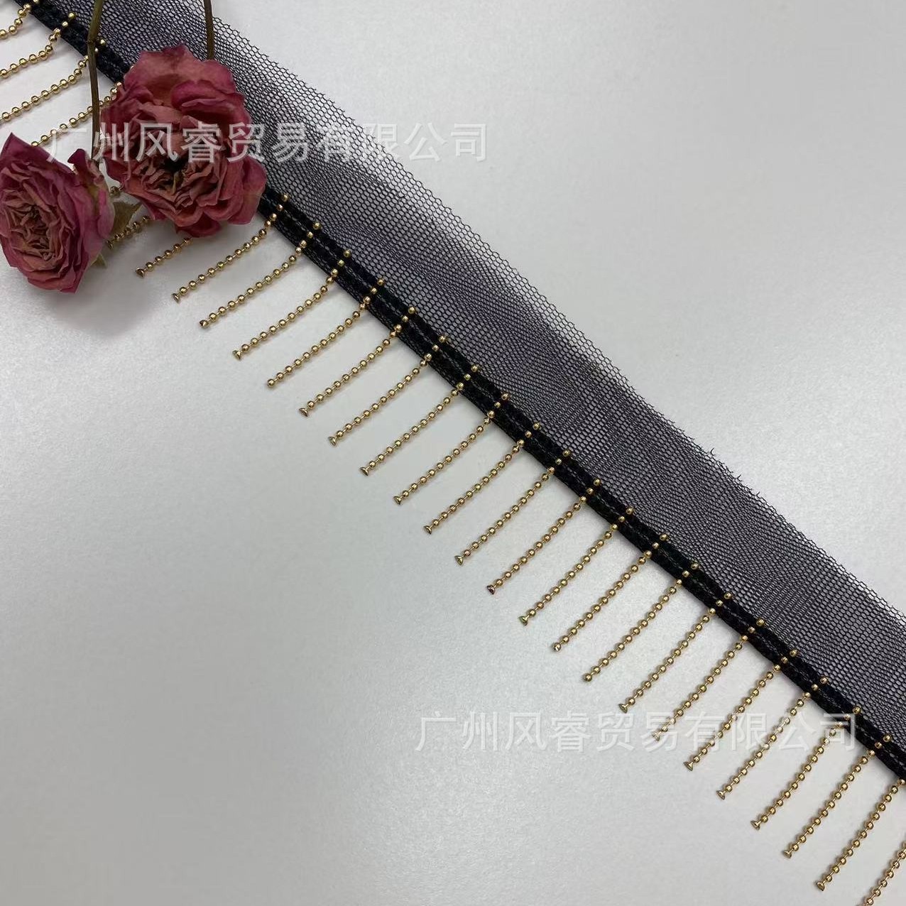 厂家现货3公分剪三刀网纱绣珠链流苏花边 金属链条排须DIY服装