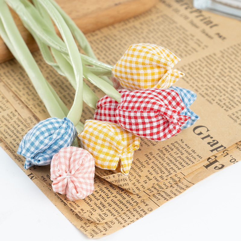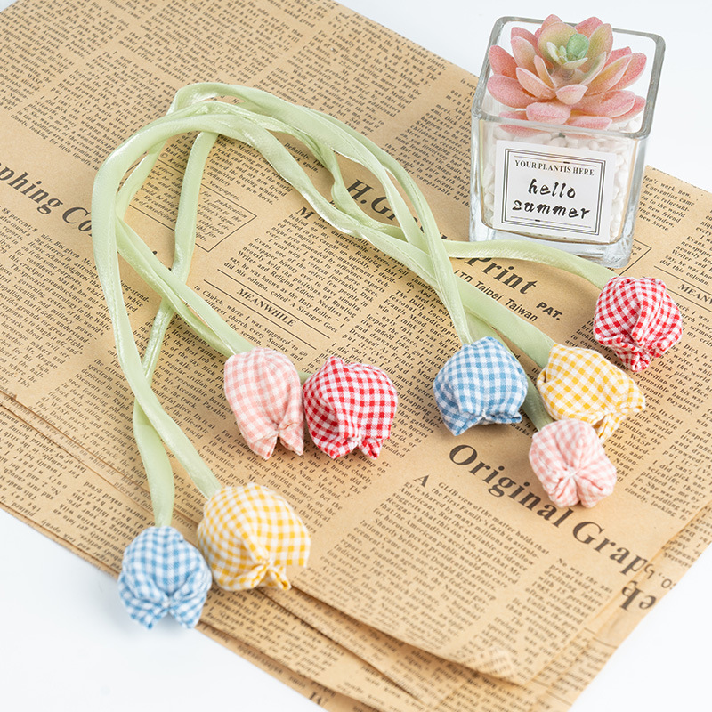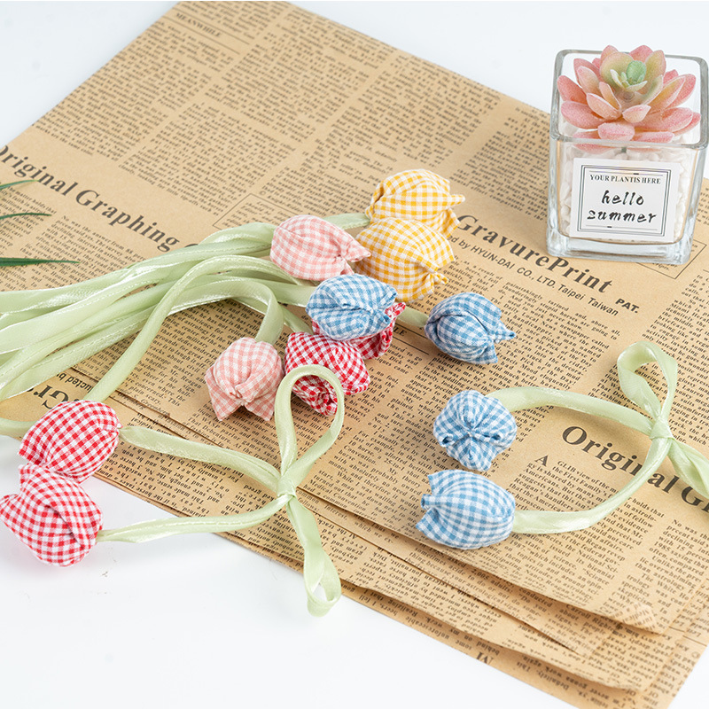 甜美格纹郁金香小挂件花苞服饰饰品配件diy发夹发绳包包配饰辅料