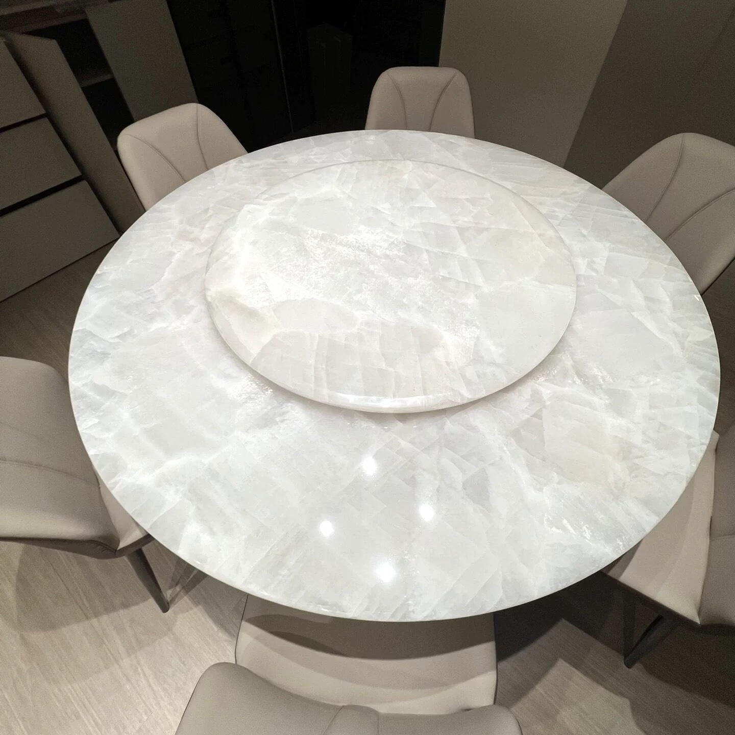 进口天然奢石冰河世纪餐桌天然大理石冰川白玉高端别墅轻奢家用