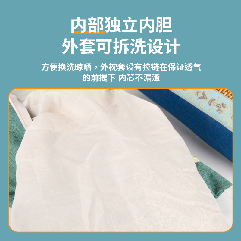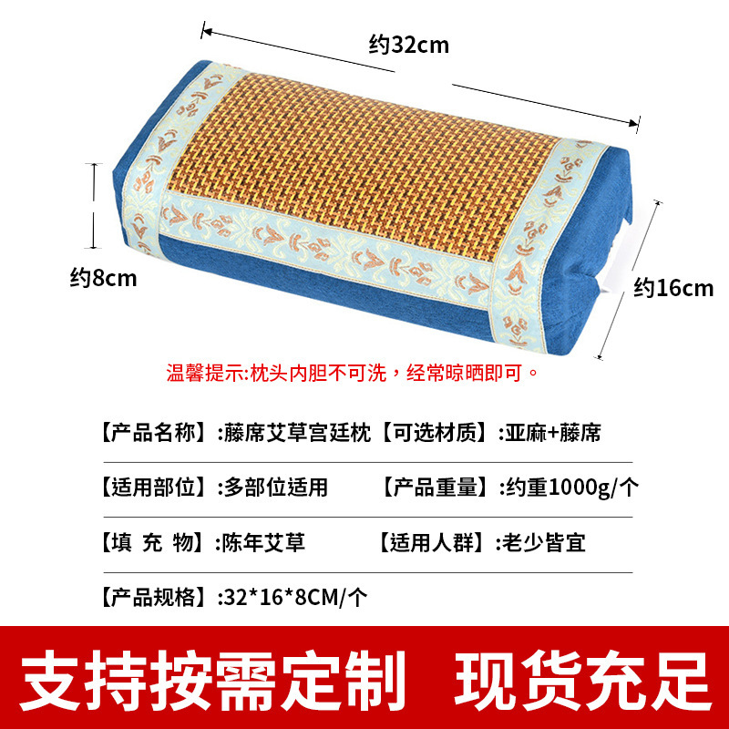 艾草冰丝宫廷枕家用睡眠护颈艾草颈椎枕夏季藤席方形艾草枕头批发