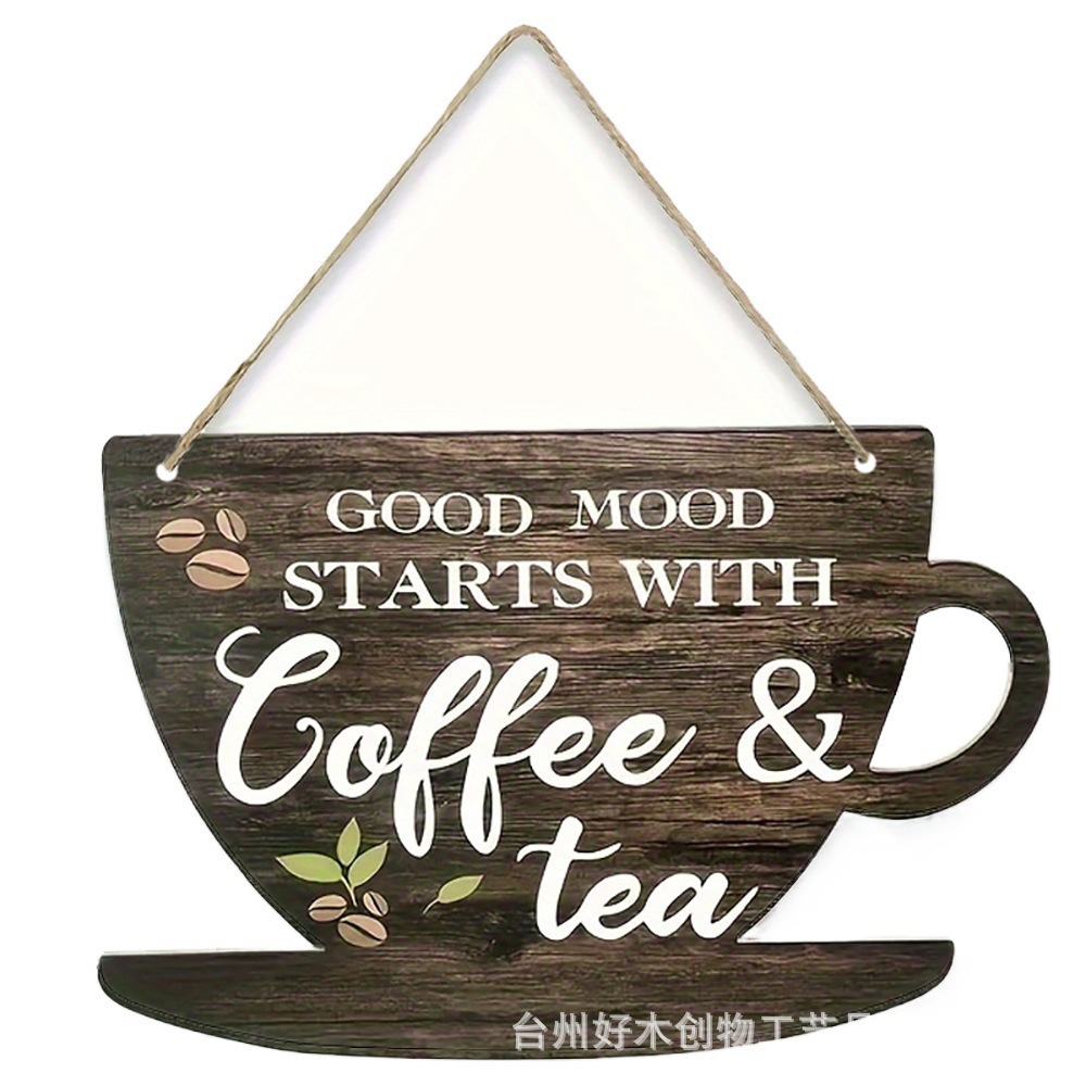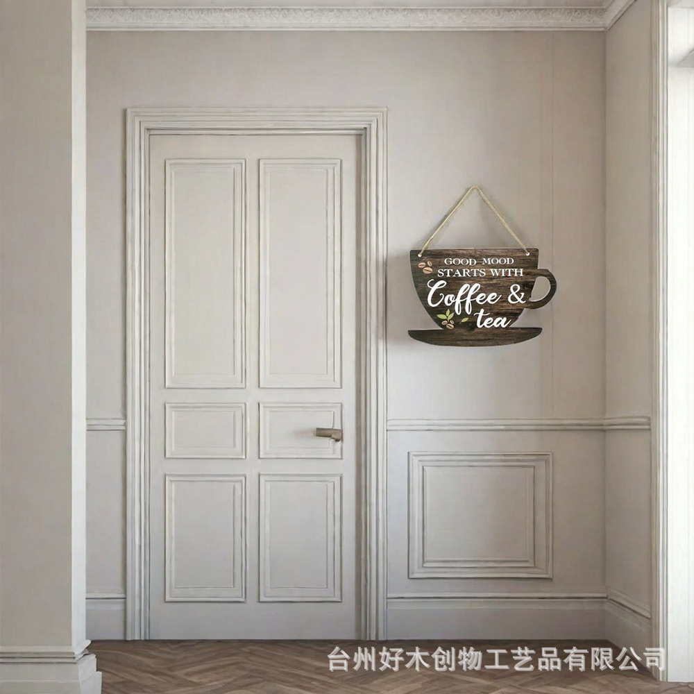创意咖啡杯形挂牌乡村风咖啡厅标语装饰木制工艺品圆形挂牌悬挂式