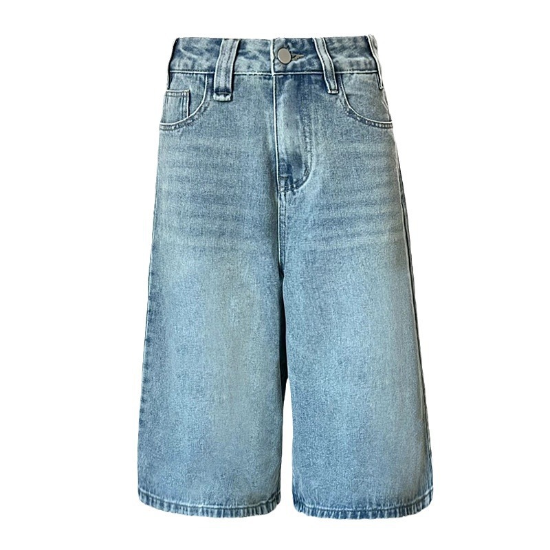 复古阔腿7分牛仔裤女2025新款中性高腰宽松显瘦百搭七分过膝中裤