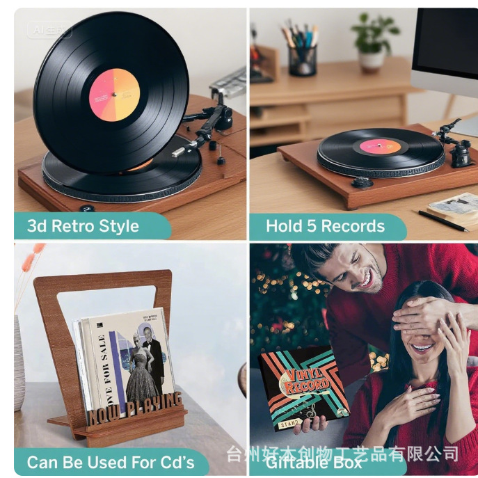 木质唱片架创意支架黑胶架3D复古LP置物架实木