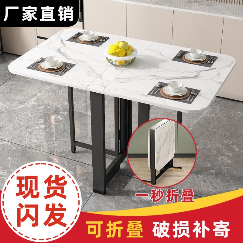 折叠餐桌家用小户型多功能可移动桌子组合四凳长方形吃饭桌子