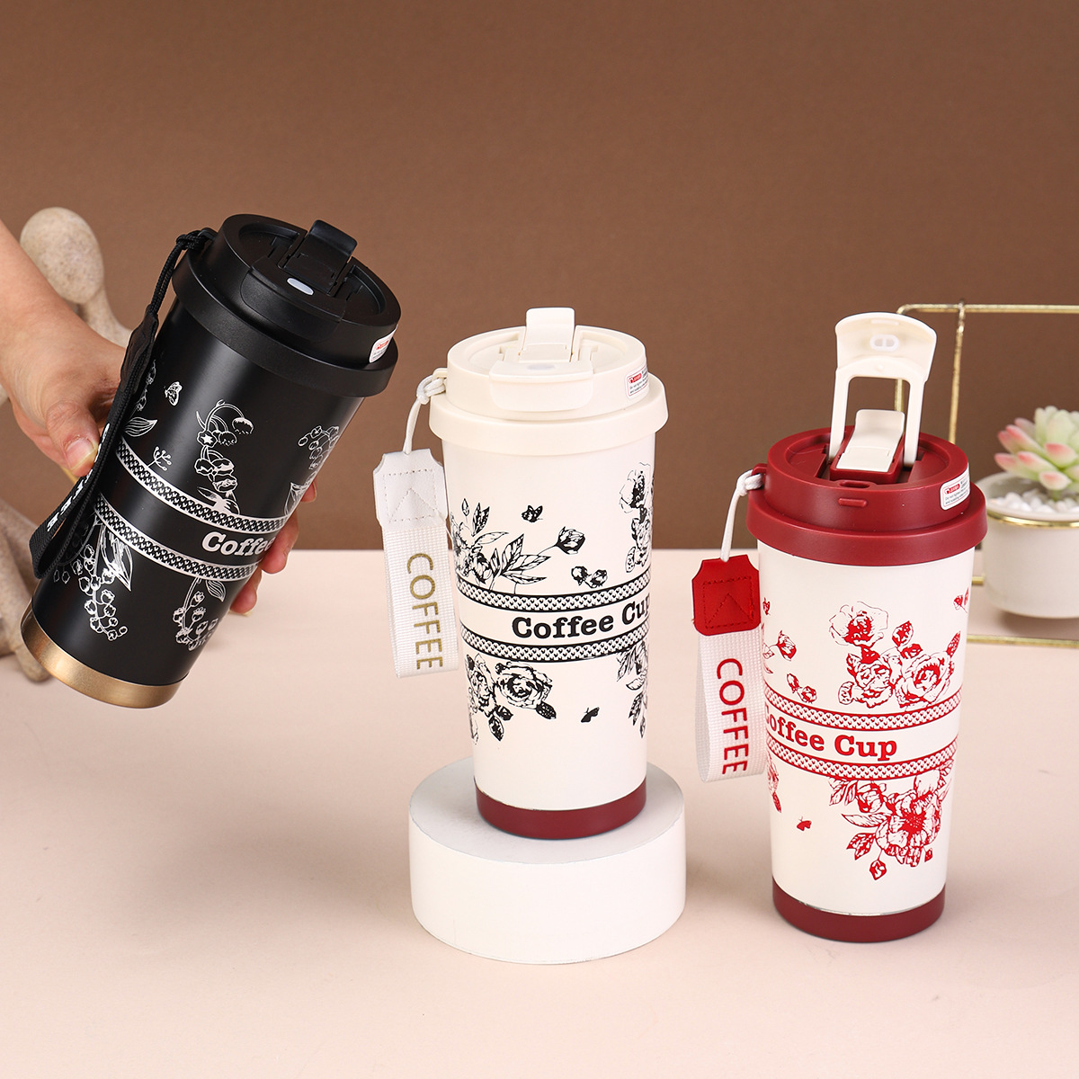 新款铃兰花双饮保温杯不锈钢高颜值咖啡杯车载简约水杯工厂批发