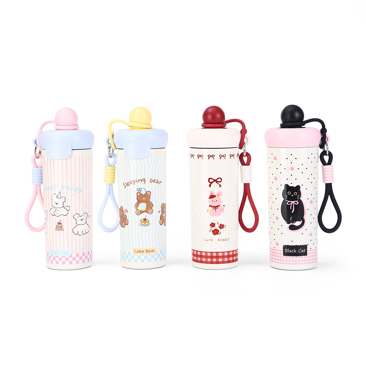 2025新款316双层不锈钢保温杯便携提绳吸管杯可爱动物浮球随行杯