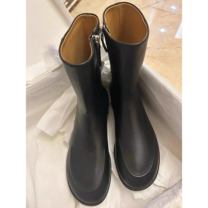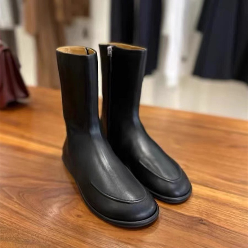 牛皮版~小众设计马丁靴女英伦风复古侧拉链瘦瘦靴平底真皮短靴子