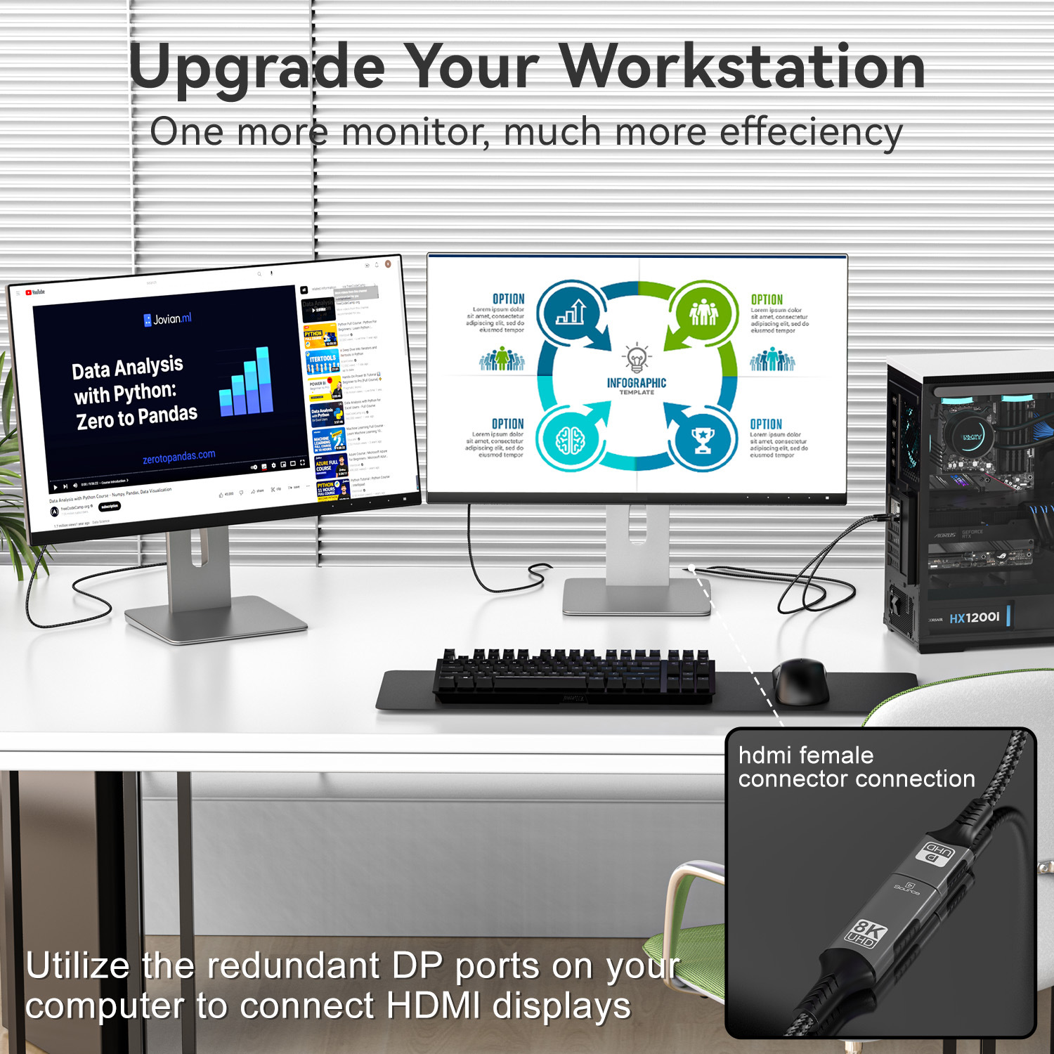 8K/60Hz DP公转HDMI-A母转换线高清线视频线显示器延长线4k