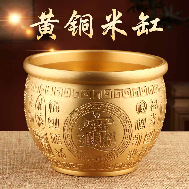| 颜色 | (主图款)财神献宝套装百福财缸大号 | 颜色 | (可刻字)大百福铜缸(1号)带铜底座 |