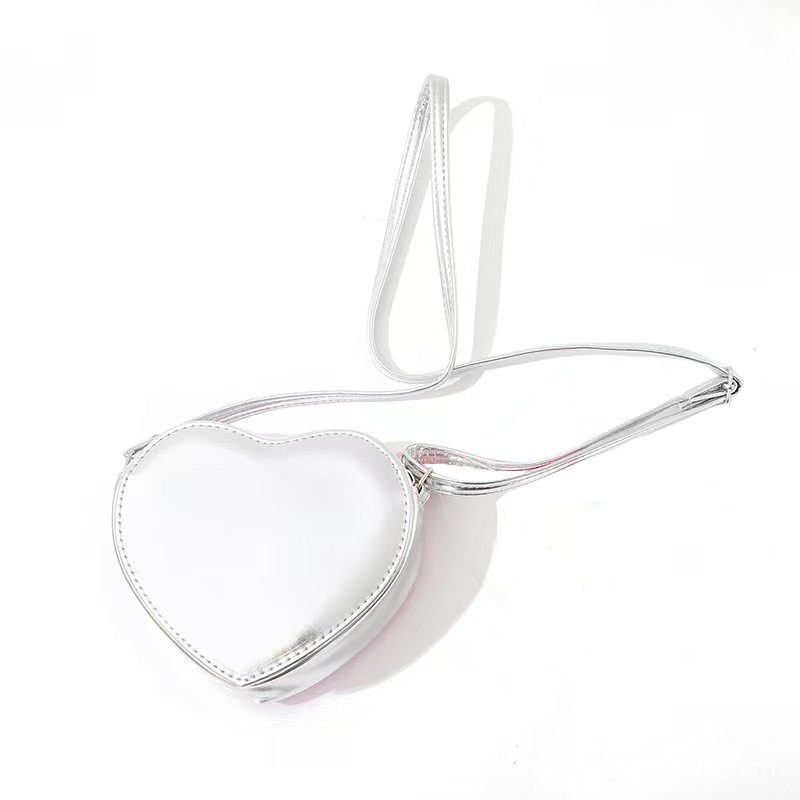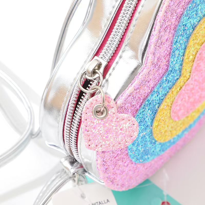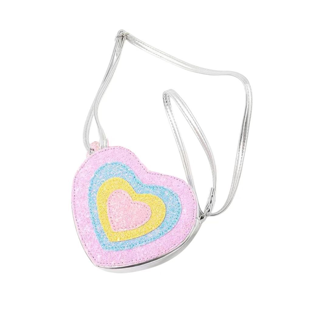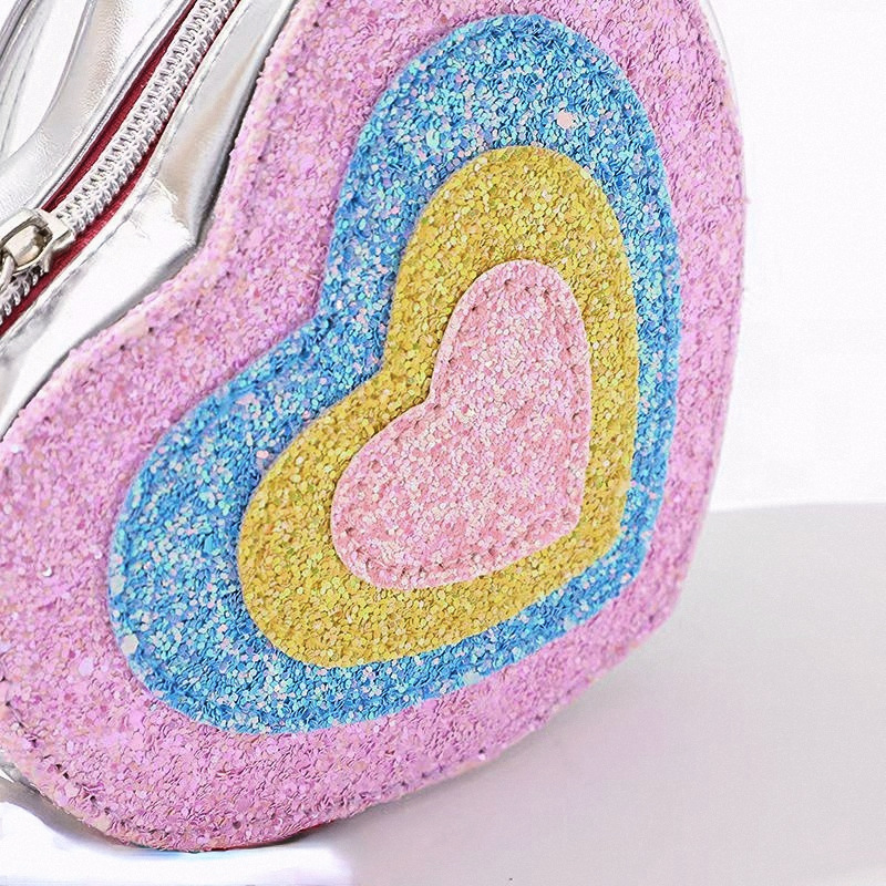 新款爱心造型儿童单肩包 多色拼接彩虹斜挎包 女童外出可爱小挎包