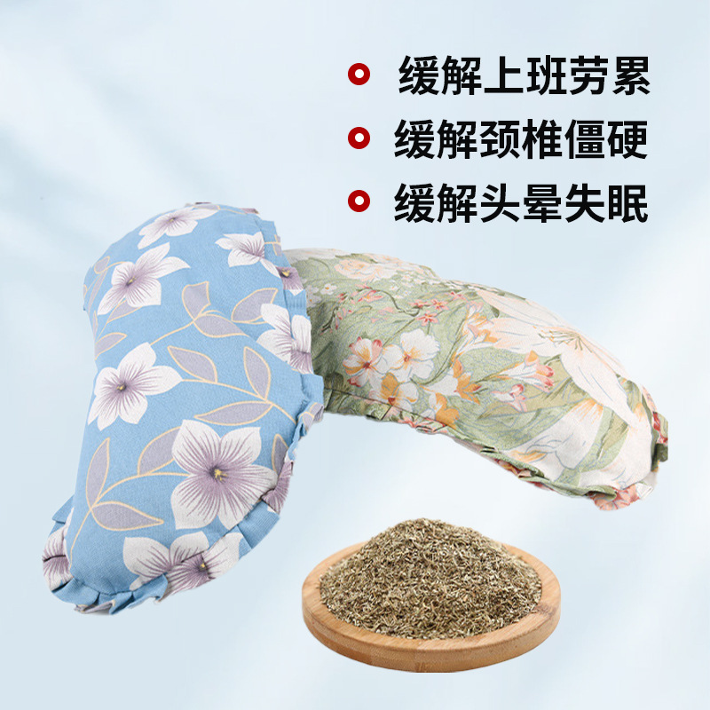 艾草月牙枕护颈透气亚麻艾草枕家用艾绒可拆洗睡眠艾草颈椎枕批发