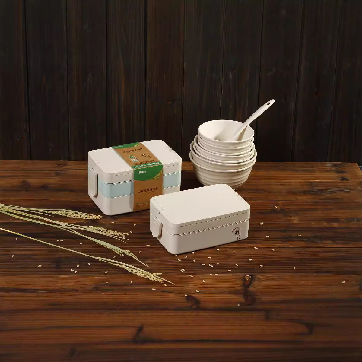 小麦秸秆饭盒稻壳纤维饭盒便携式户外旅行功夫饭盒