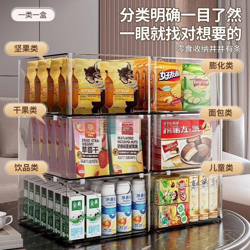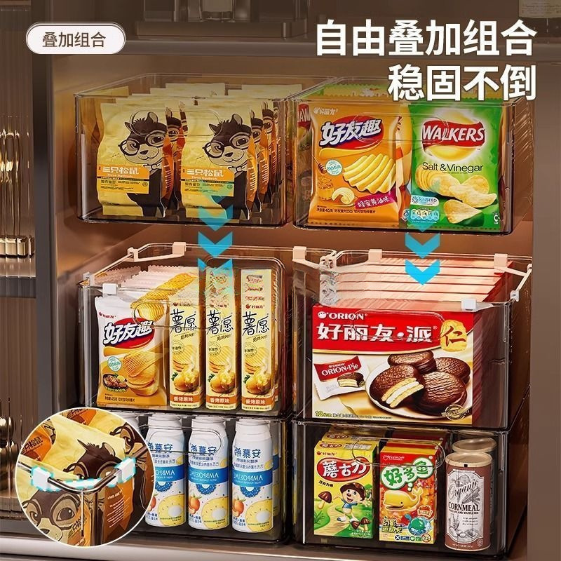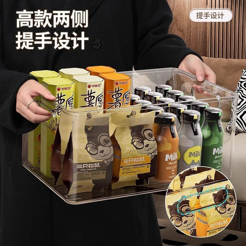 高颜值橱柜收纳盒提手式整理杂物零食窄长置物筐桌面透明储物盒子