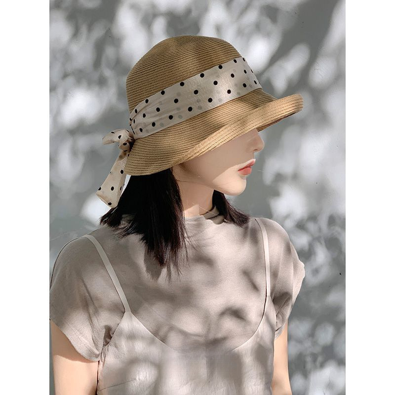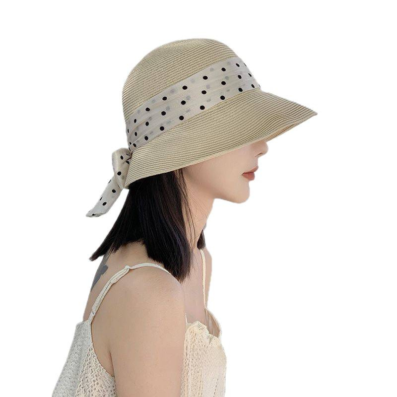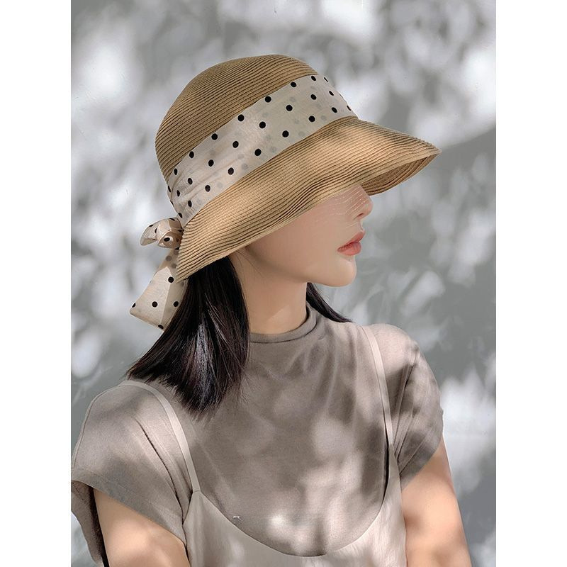夏季女士法式波点帽蝴蝶结遮阳帽海边度假沙滩遮阳防晒太阳帽