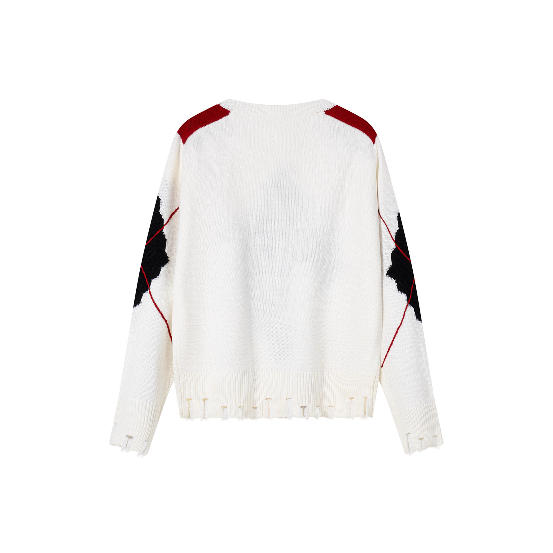 复古毛衣秋冬立体图案宽松慵懒毛衣菱格拼色针织打底衫女内搭毛衣