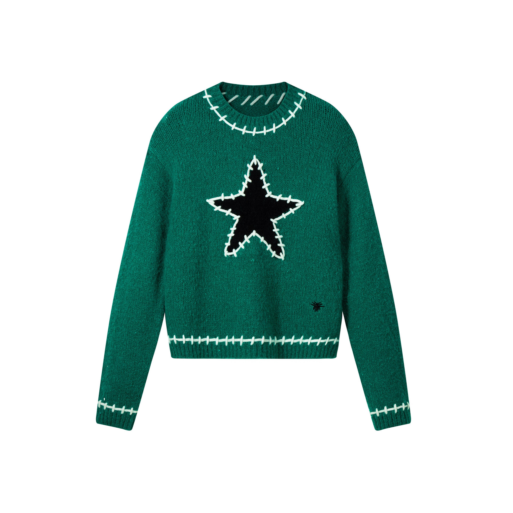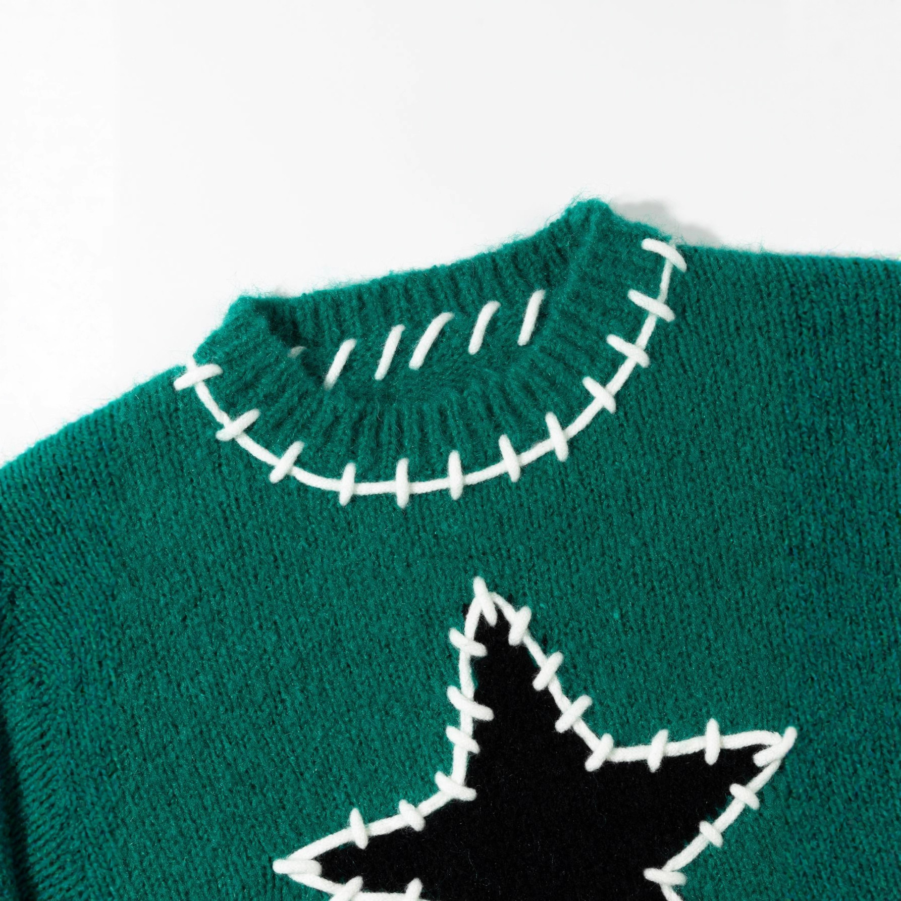 秋冬新款时尚宽松撞色星星毛衣胖mm宽松显瘦套头针织衫女