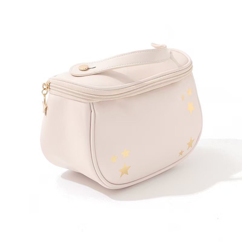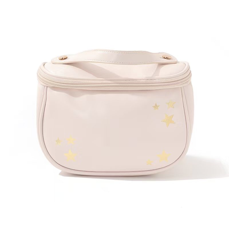 新款PU立体大容量化妆包 烫金星星便携洗漱包 旅游出行分区收纳包