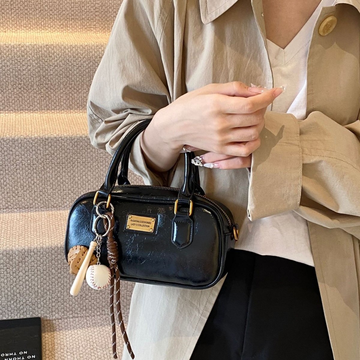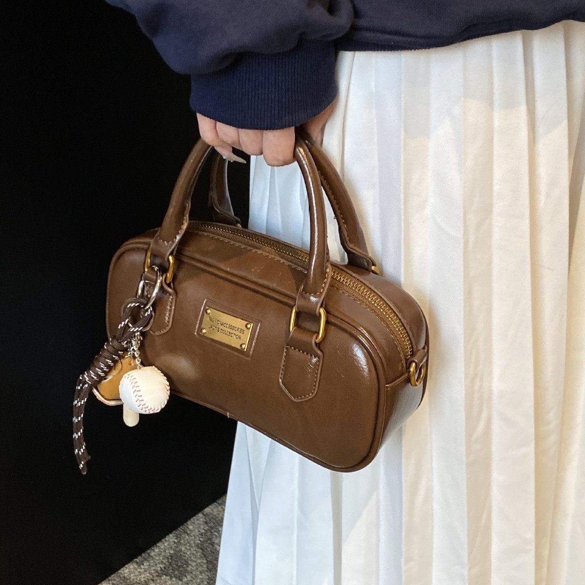 包包女秋2025新款网红爆款洋气包百搭斜挎包小众复古手提保龄球包