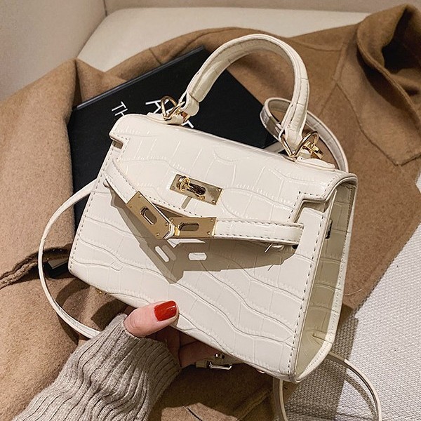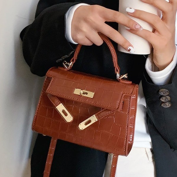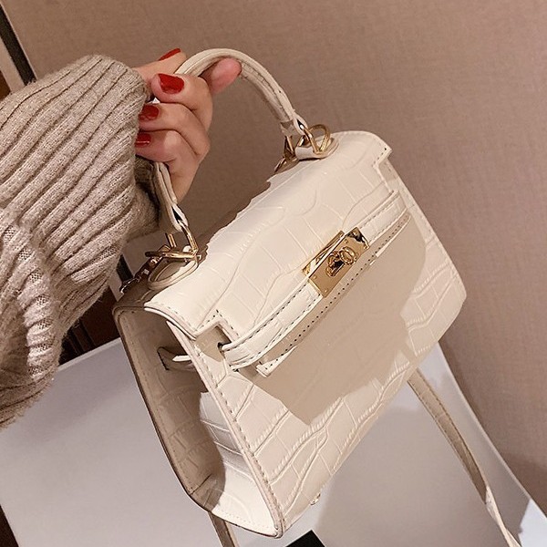 新款凯莉包时尚鳄鱼纹小众单肩斜挎包通勤上班洋气质感法式手提包