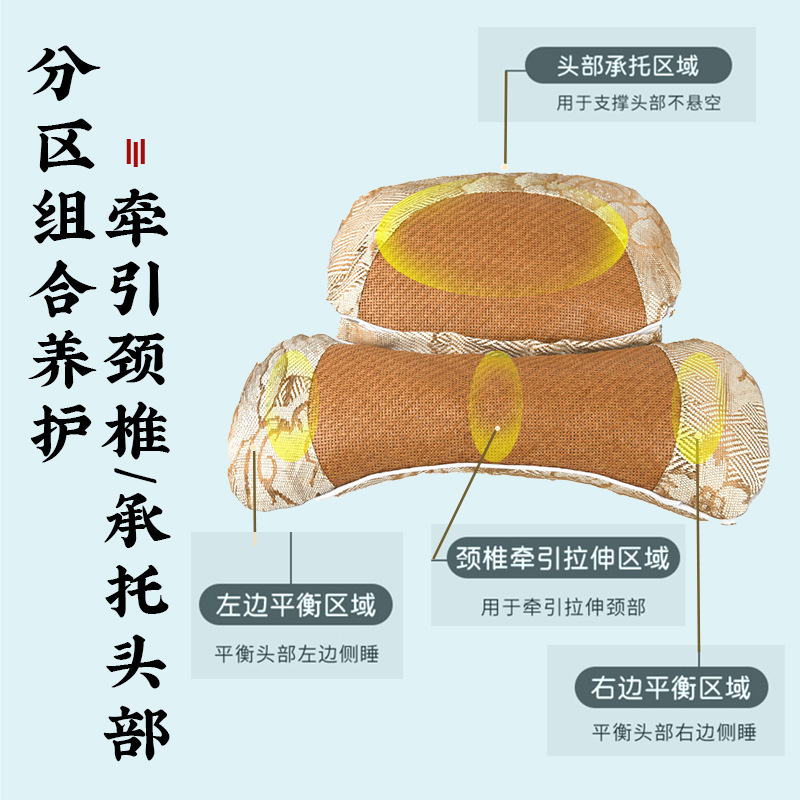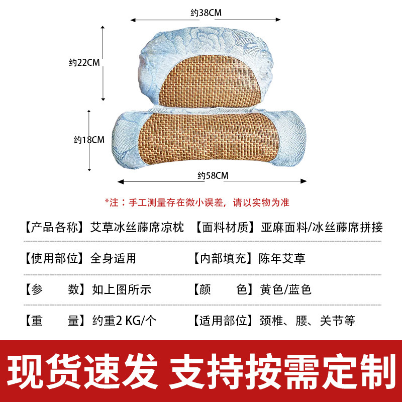 艾草颈椎枕夏季冰丝凉席连体枕家用可拆卸护颈椎藤席艾草枕头批发