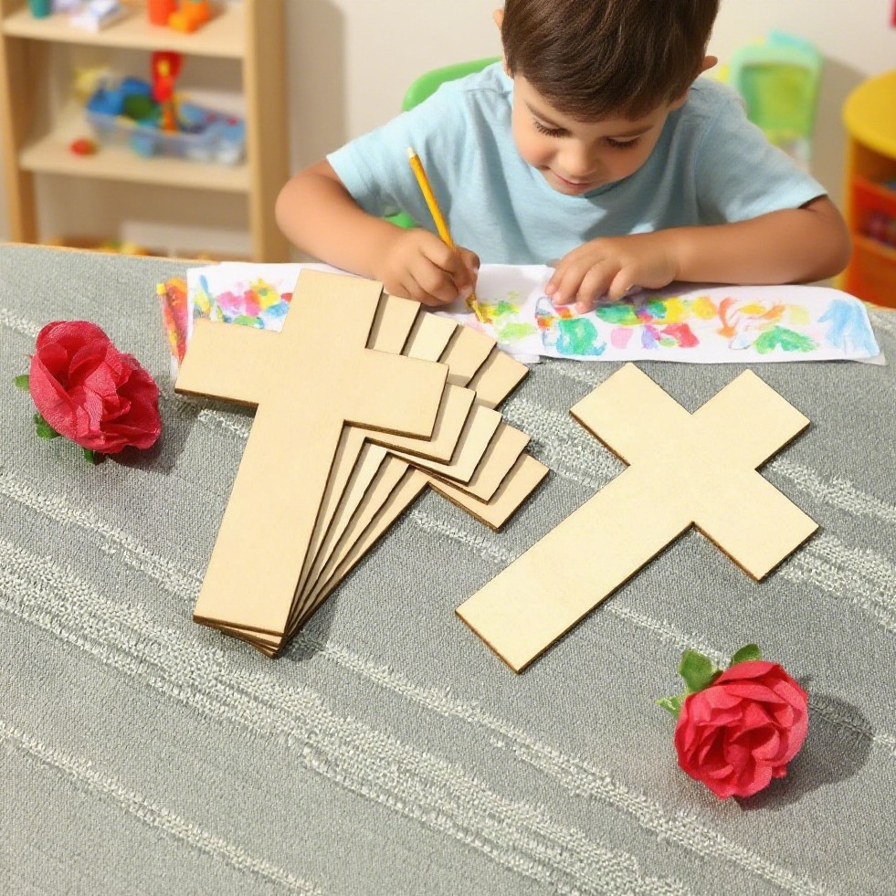 跨境直销原木色十字架木片儿童绘画亚马逊DIY创意彩绘木质工艺品