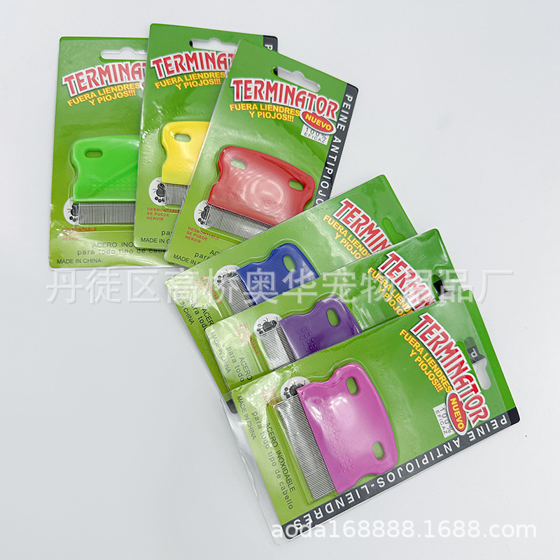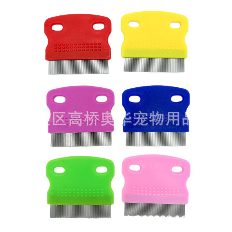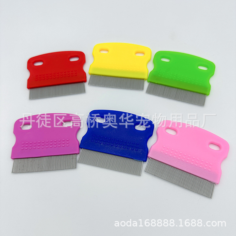 新款宠物梳子 去浮毛除跳蚤密齿不锈钢针梳宠物清洁美容工具批发