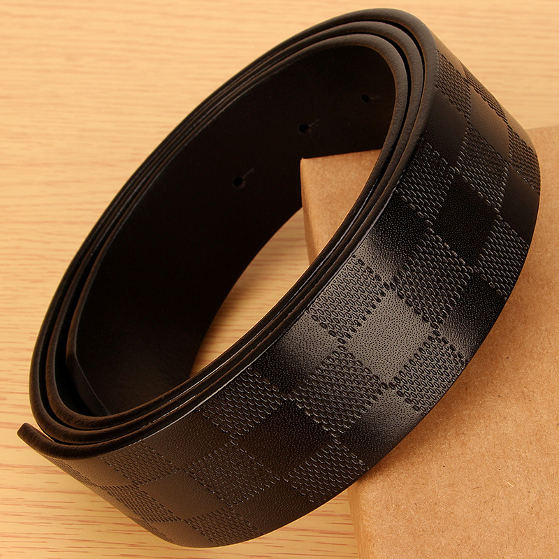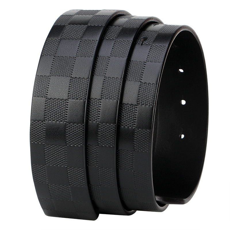 3.8CM复古棋盘格牛皮皮带男士针扣板扣带条品质腰带无扣头平滑扣