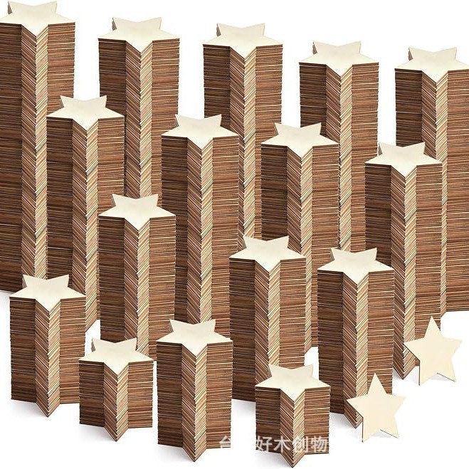 跨境原木片木制品五角星挂件木片DIY空白圣诞节日装饰星星木片