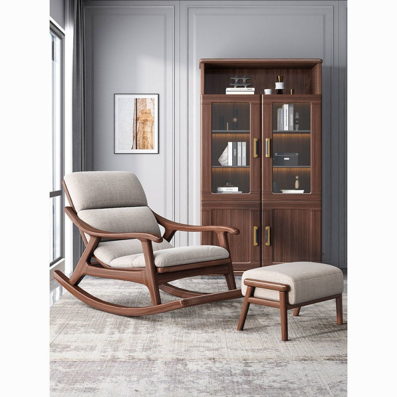 新中式摇摇椅实木胡桃摇椅大人躺椅阳台家用休闲客厅懒人舒适慢摇