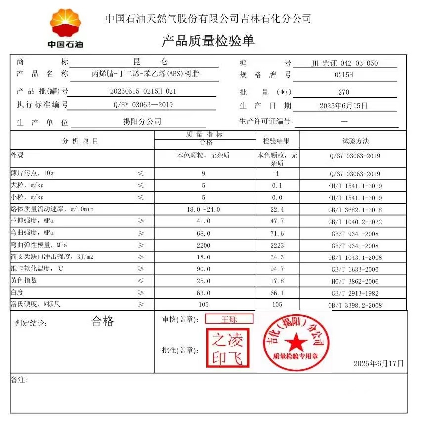 产地ABS 中石油吉化(揭阳) 0215H