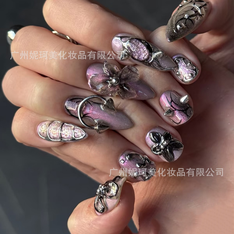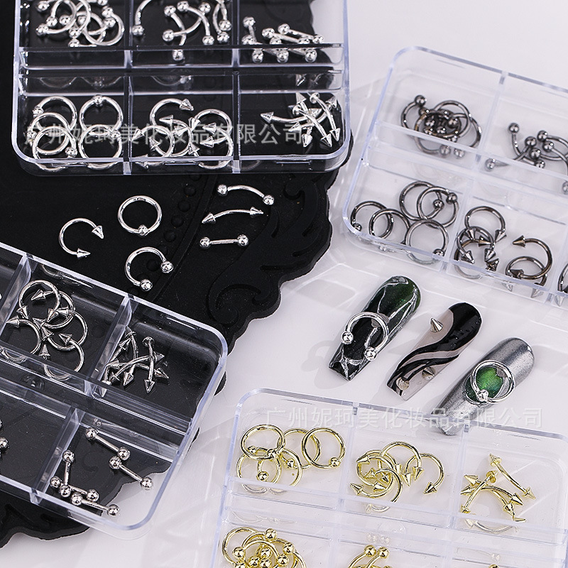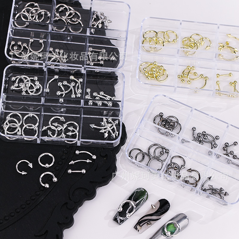 美甲穿孔铆钉饰品辣妹朋克风金属打孔钉子吊环diy穿戴指甲钻配饰