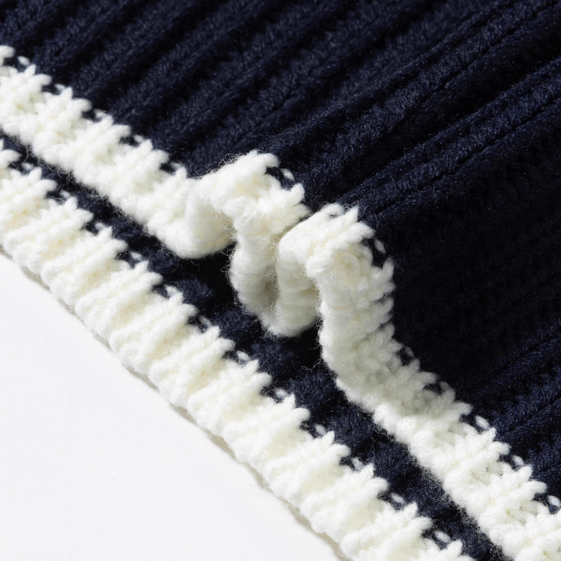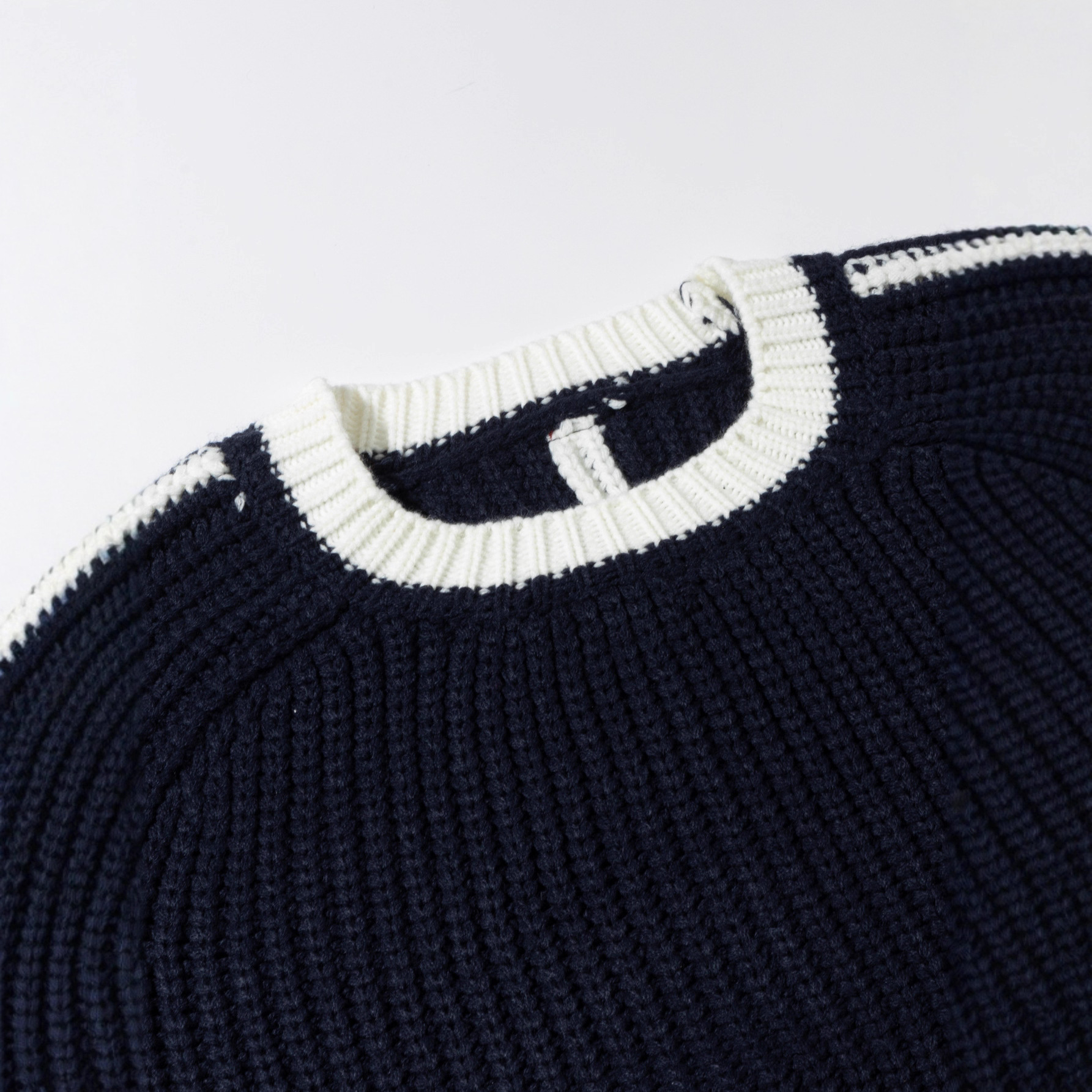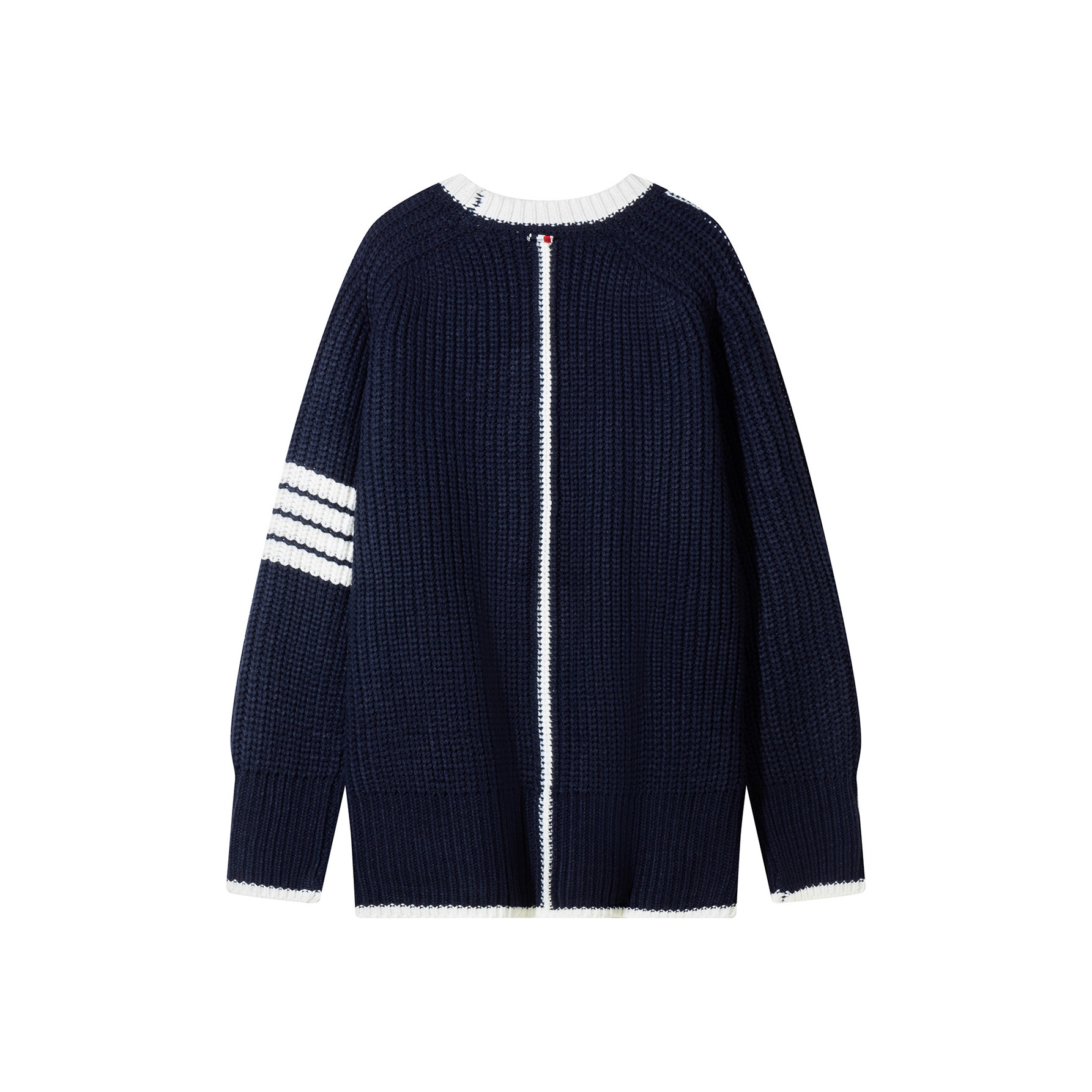 毛衣四道杆红白蓝粗针粗线白边圆领开衫针织衫毛衣外套男女毛衣