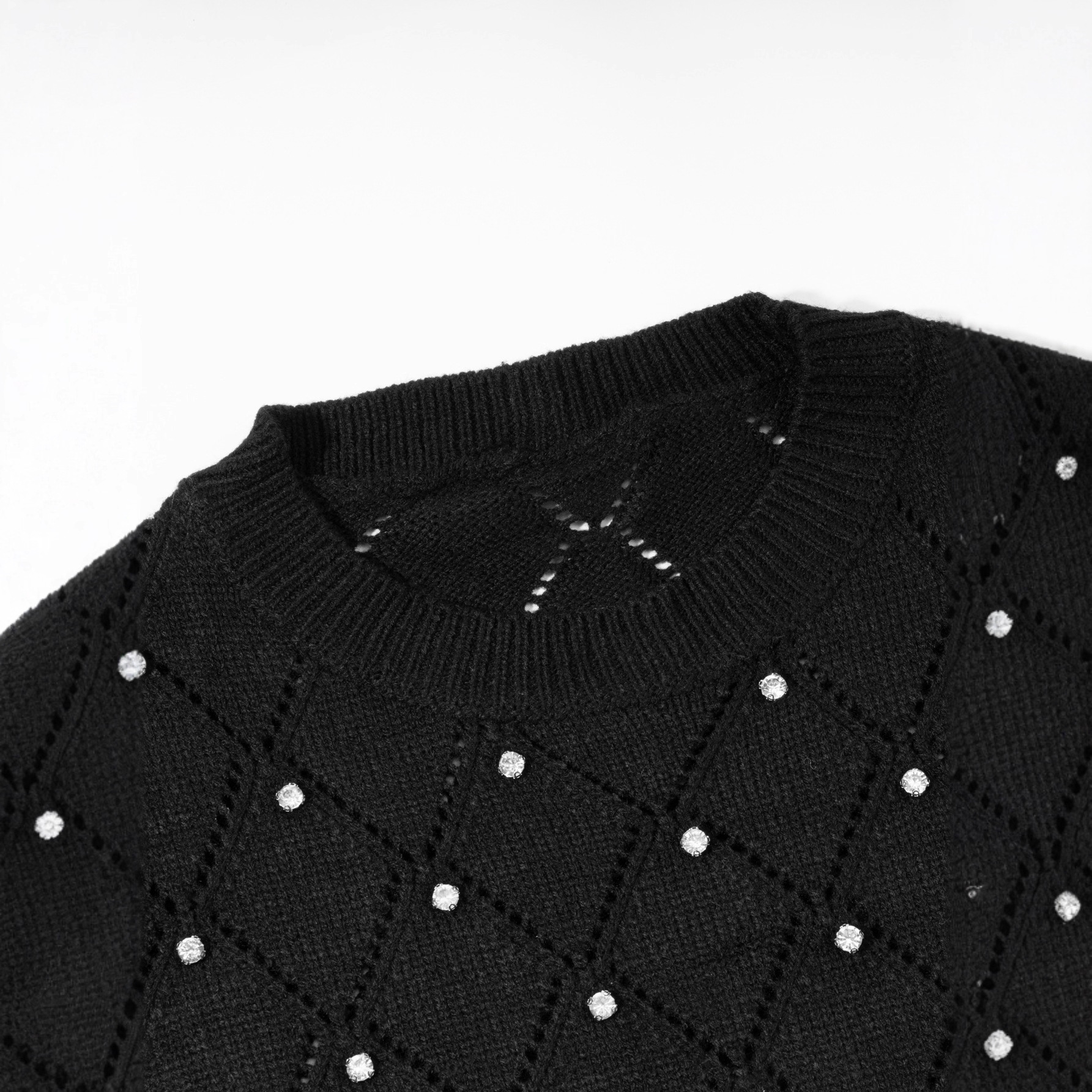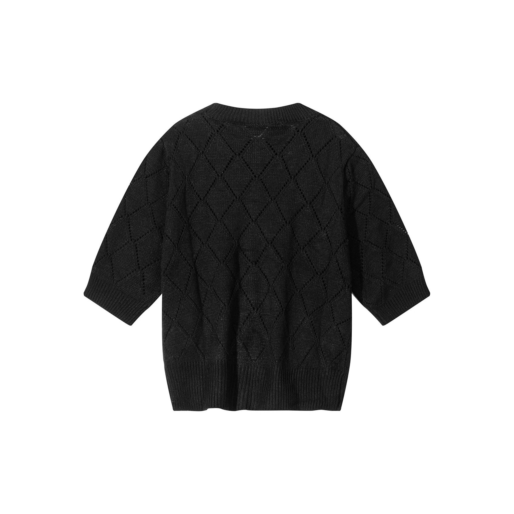 高级感正肩泡泡袖镂空短款上衣薄小香风黑色短袖针织衫t恤女