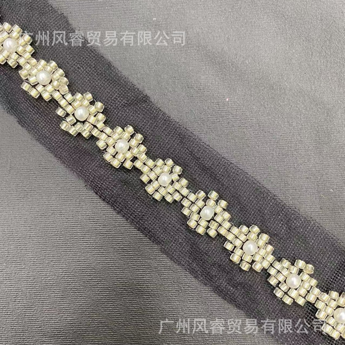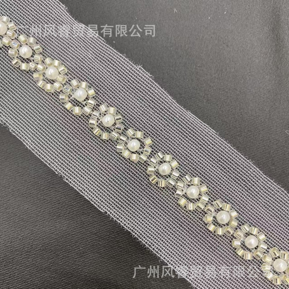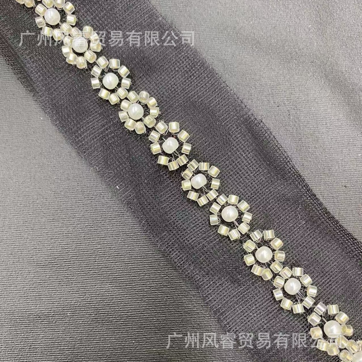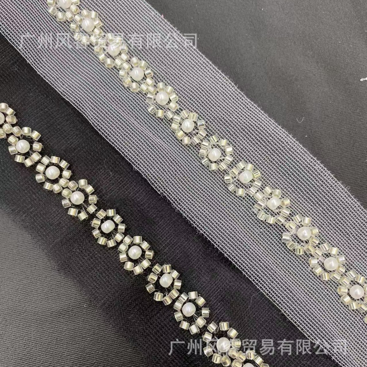 厂家现货黑色网纱珠绣珍珠花边蕾丝钉珠条码礼服婚纱服装装饰辅料