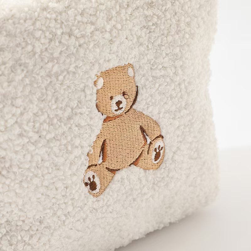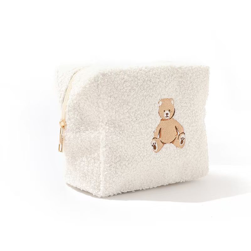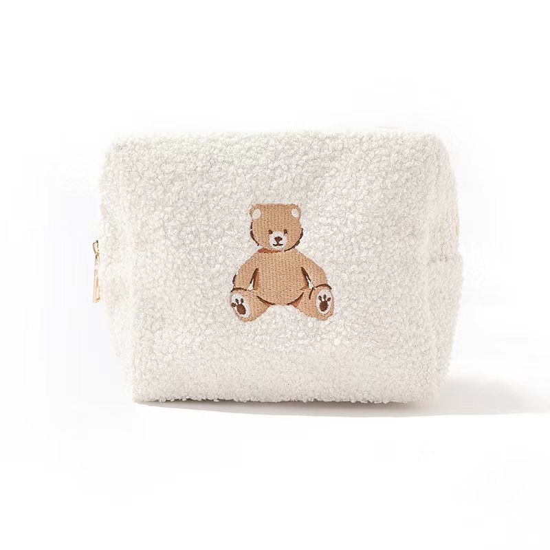 跨境新款八角毛绒化妆包 小熊刺绣洗漱包 立体容量美妆小物收纳包