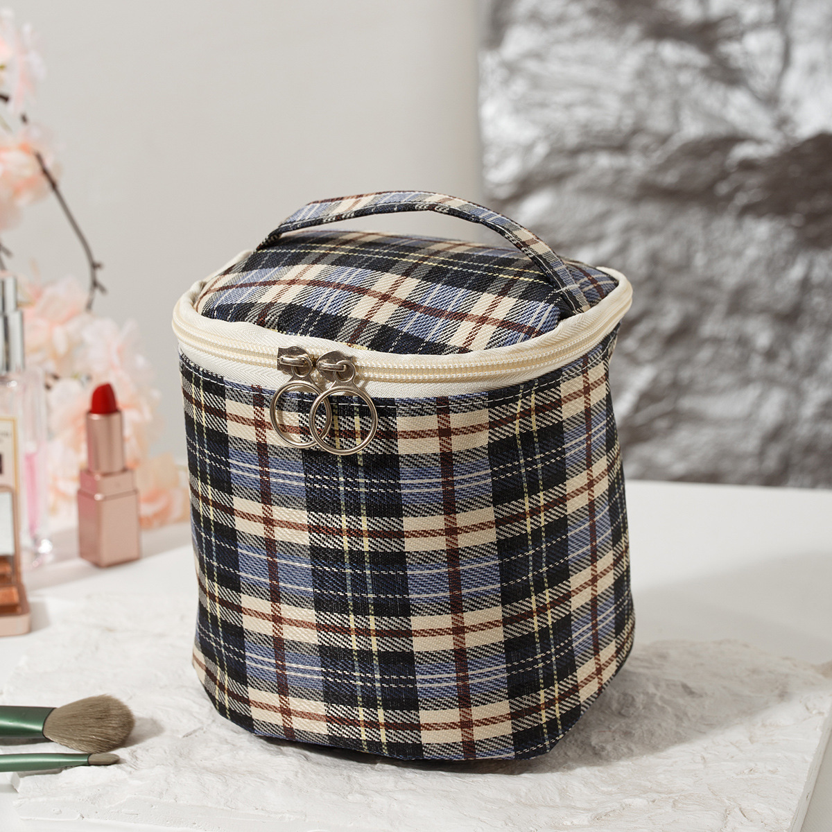 韩版盐系ins风格子布笔袋学生大容量文具收纳袋方形文具盒化妆包