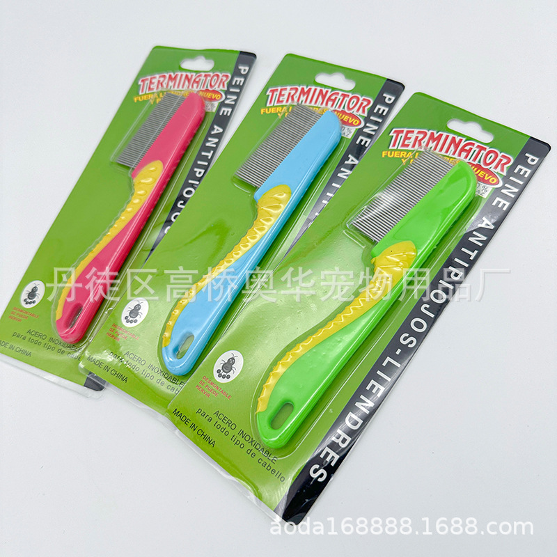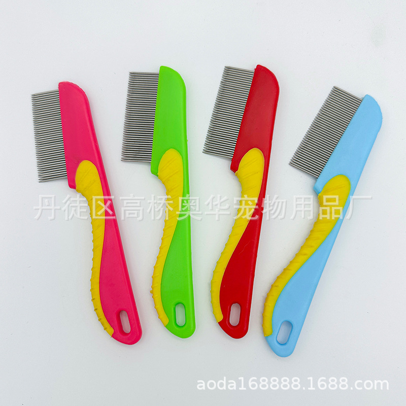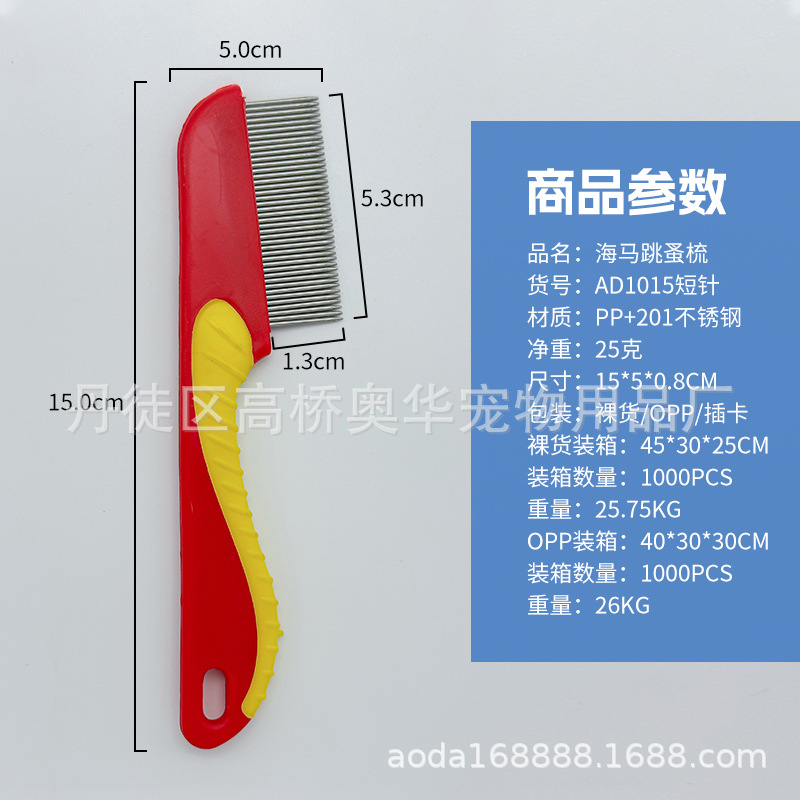 宠物用品厂家跳蚤梳子狗猫清洁梳不锈钢海马梳密齿除蚤去虱梳篦子
