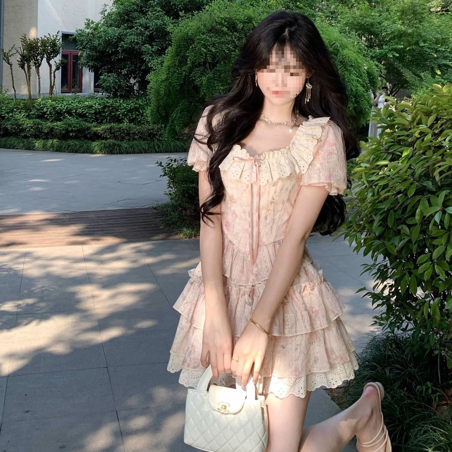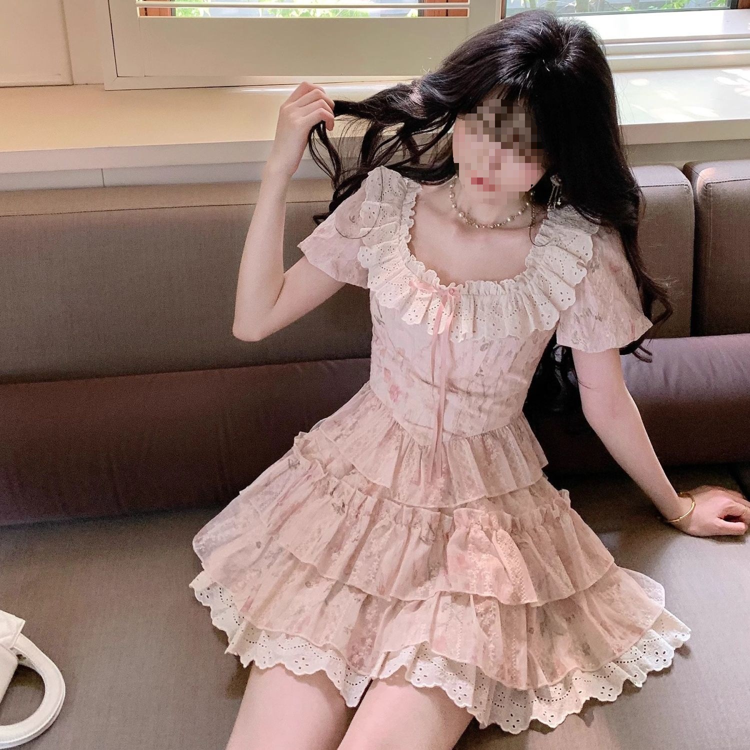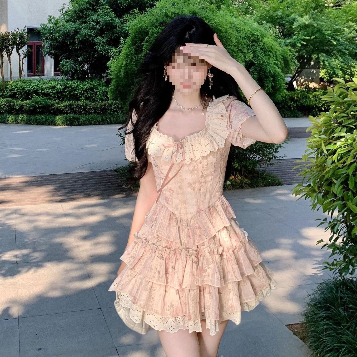 夏季新款法式纯欲少女甜美减龄修身短袖上衣半身裙套装拼接丝光