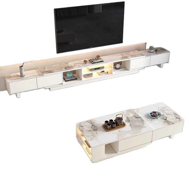 | 颜色 | 灰色伸缩电视柜+茶几组合【香耐儿岩板】 | 颜色 | 奶油色伸缩电视柜+茶几组合【香耐儿岩板】 |