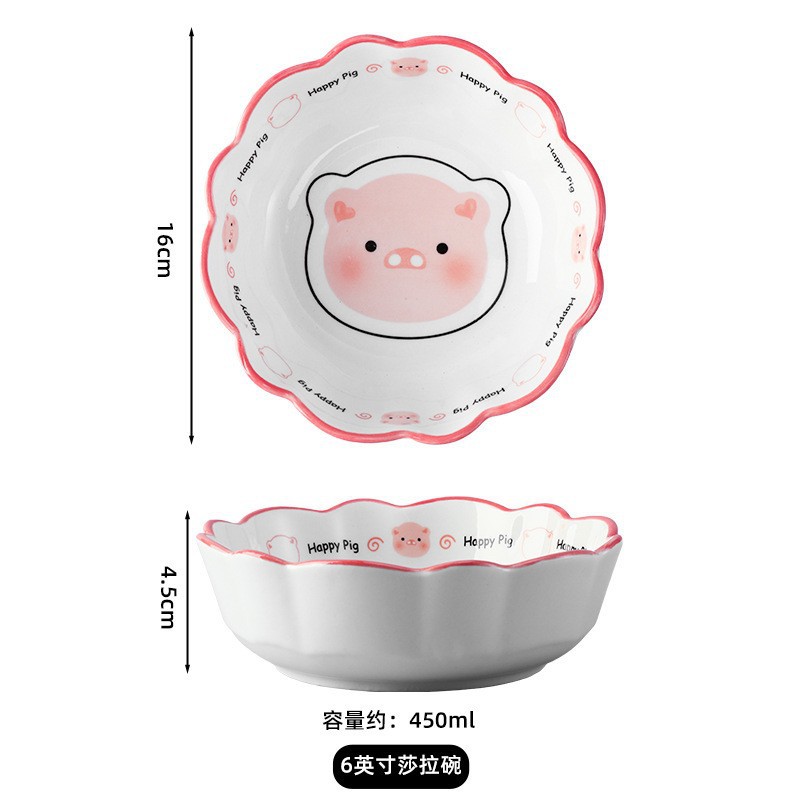 | 颜色 | 6寸边花碗-可爱猪 | 颜色 | 6寸条纹手把碗-可爱猪 |
